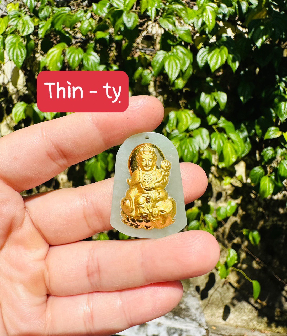 Mặt dây chuyền phật Phổ Hiền Bồ Tát bạch ngọc tự nhiên cao cấp. Hộ mệnh cho tuổi thìn và tỵ