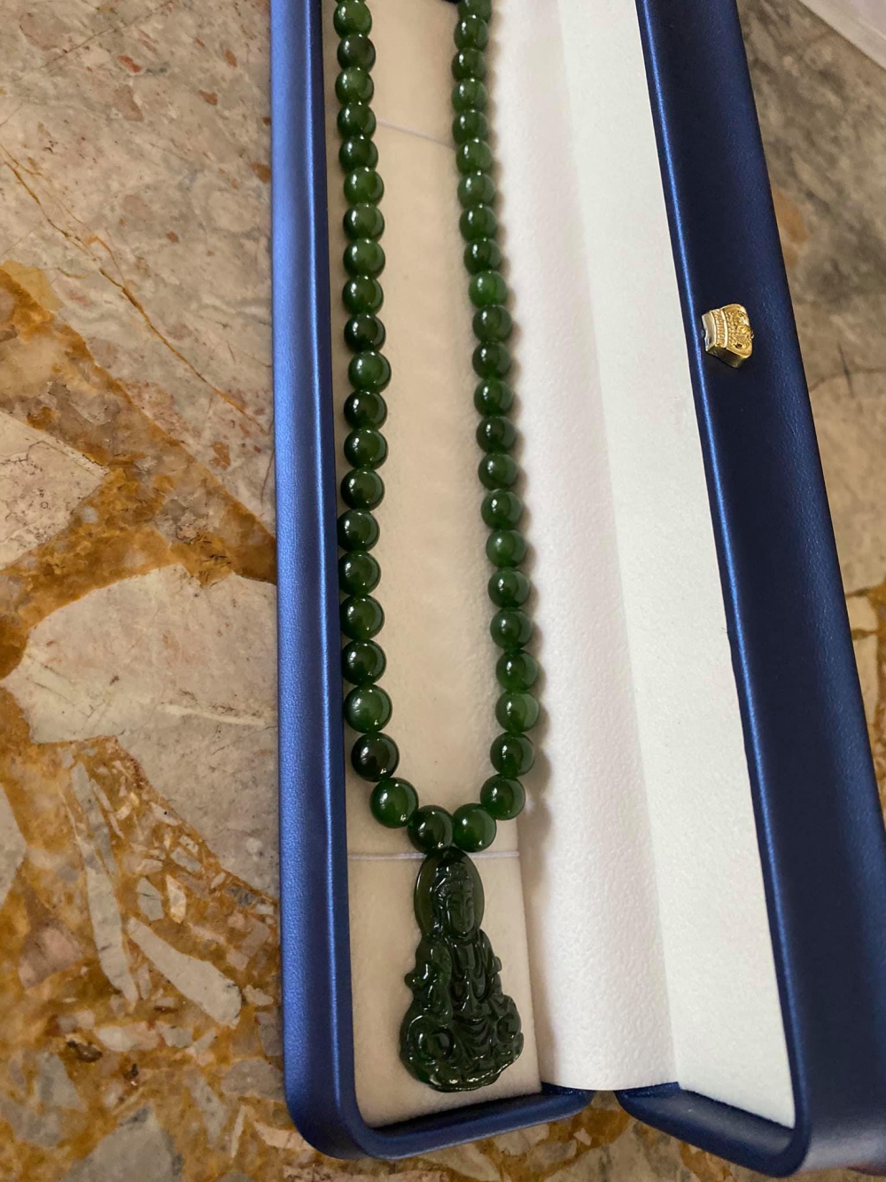BỘ DÂY ĐEO CỔ KÈM MẶT PHẬT NGỌC BÍCH NEPHRITE TỰ NHIÊN.