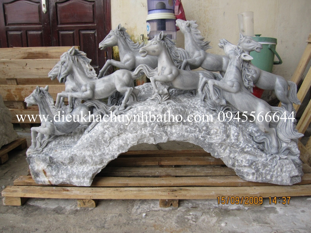 Tượng voi đá Ngọc - voi 6 ngà- miệng voi nhận hoa sen