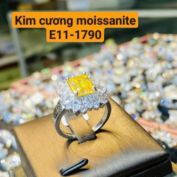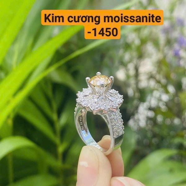 Nhẫn viên Moissanite 12ly cho chủ nhân mệnh thổ và kim