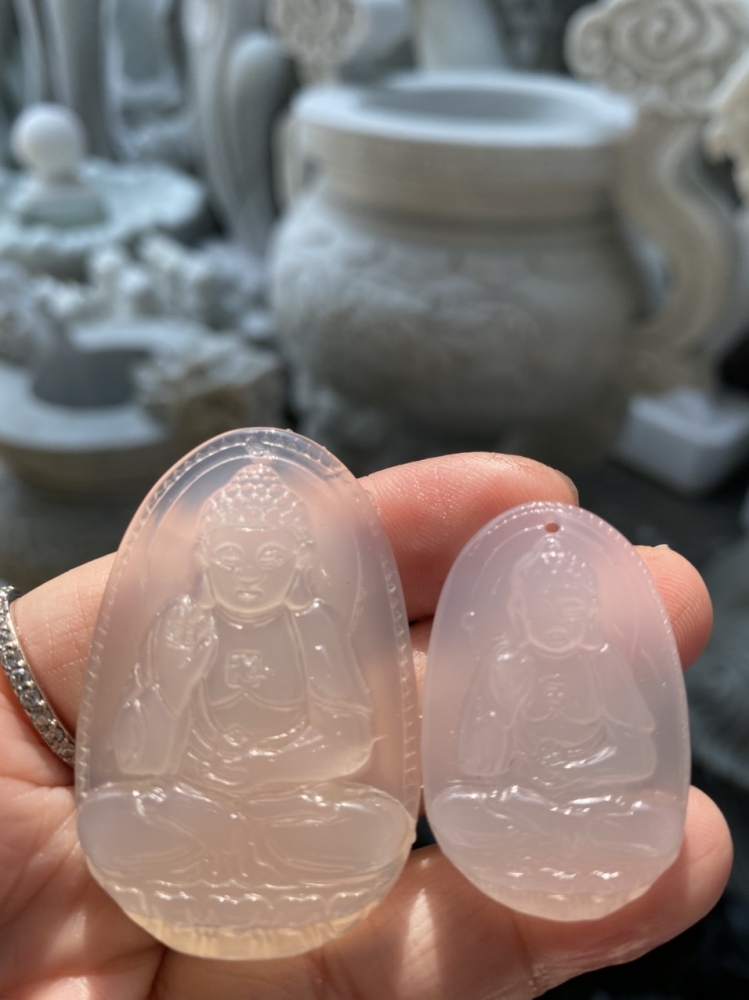 Phật bản mệnh ADiĐà đá mã não trắng tự nhiên bao kiểm định 350k - hộ mệnh tuổi hợi và tuất