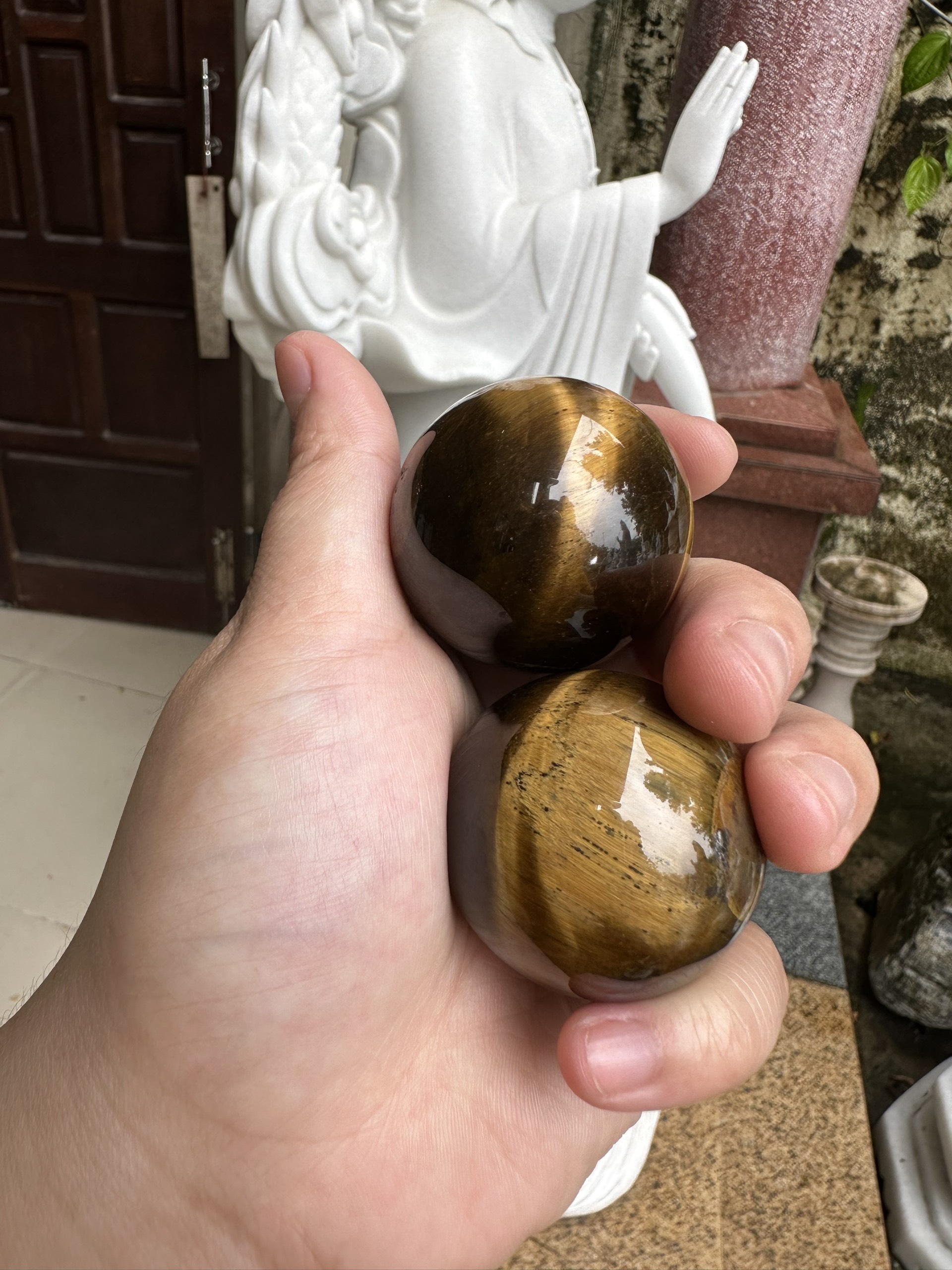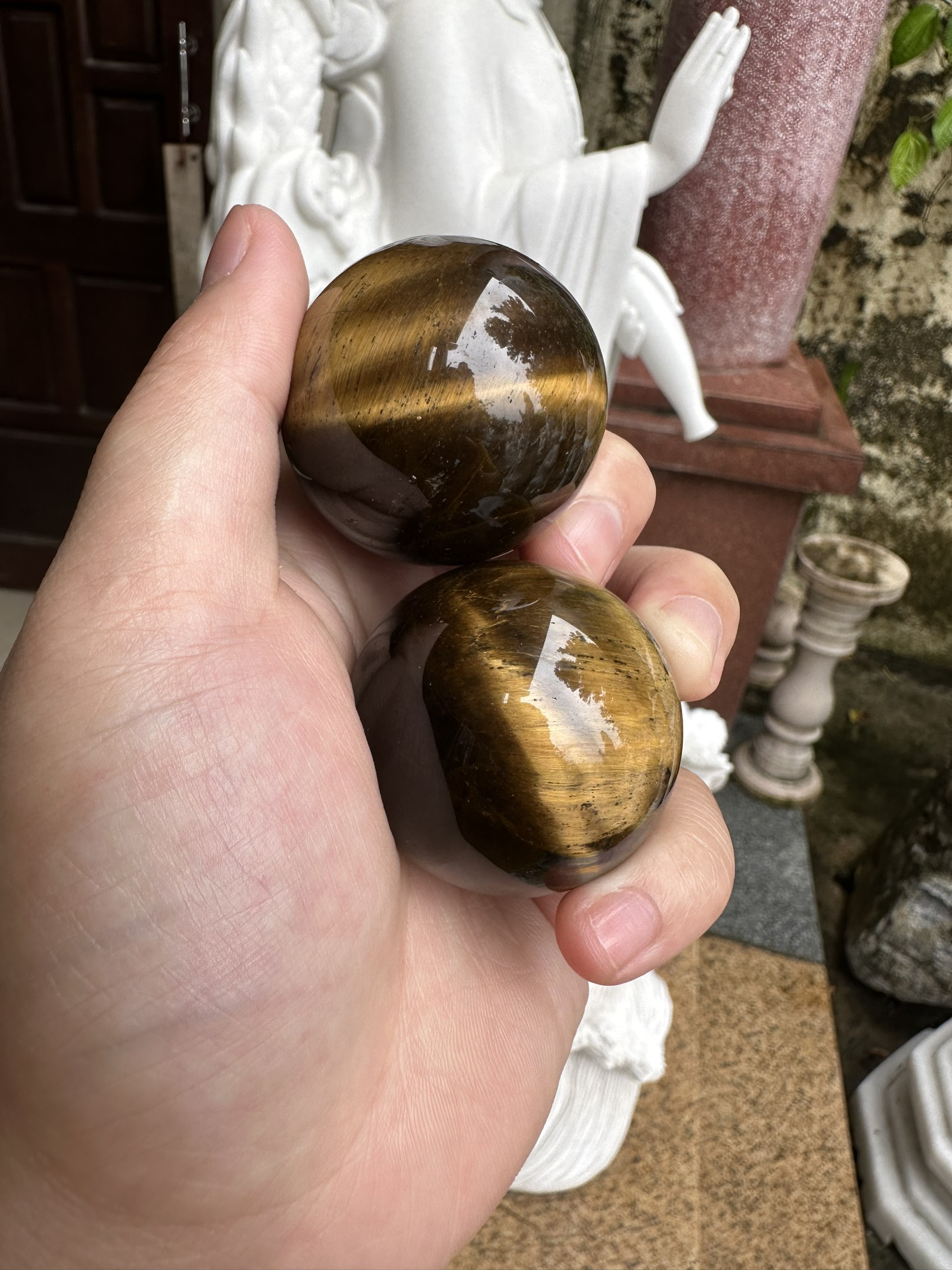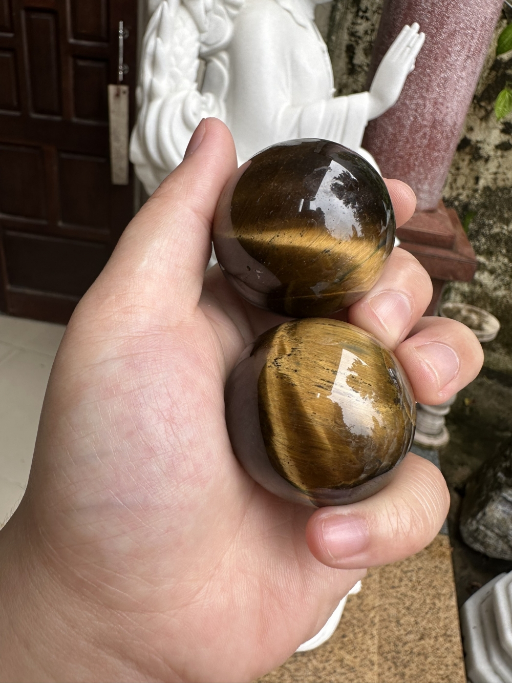 Quả cầu phong thủy đá Mắt Hổ vàng nâu