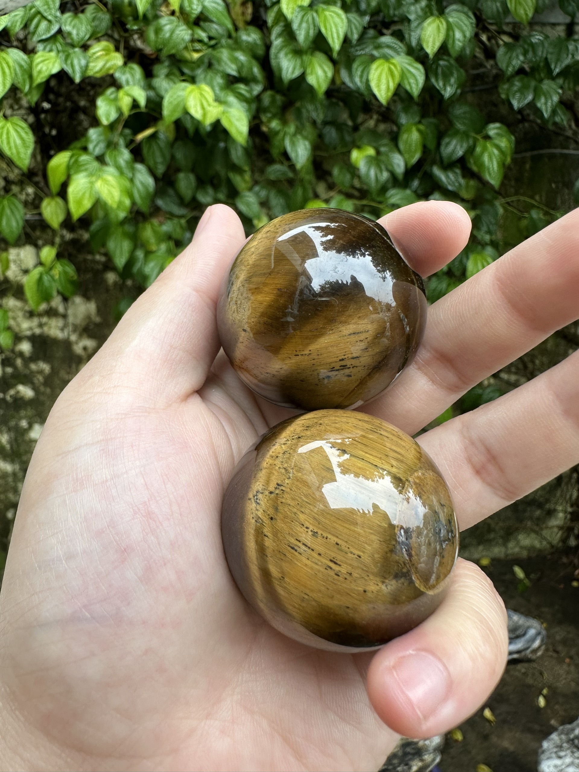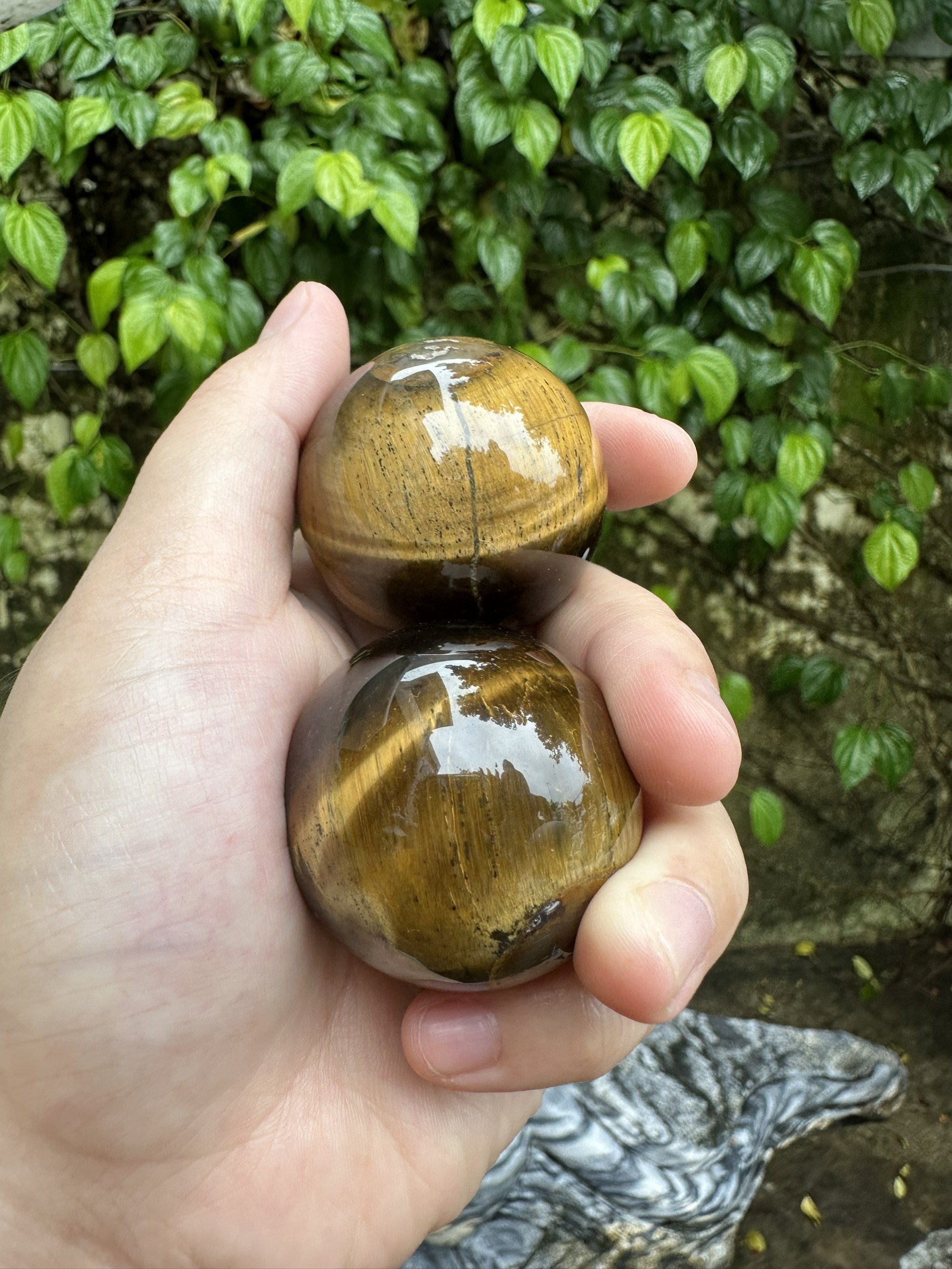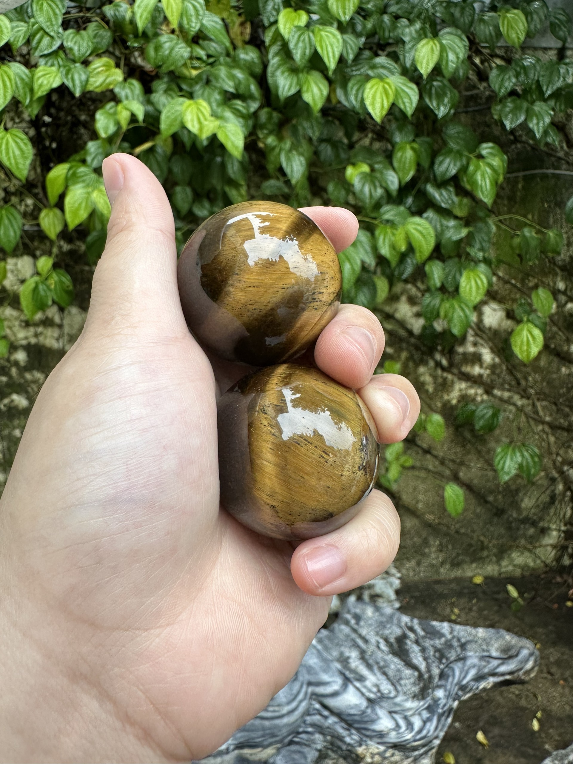 Quả cầu phong thủy đá Mắt Hổ vàng nâu