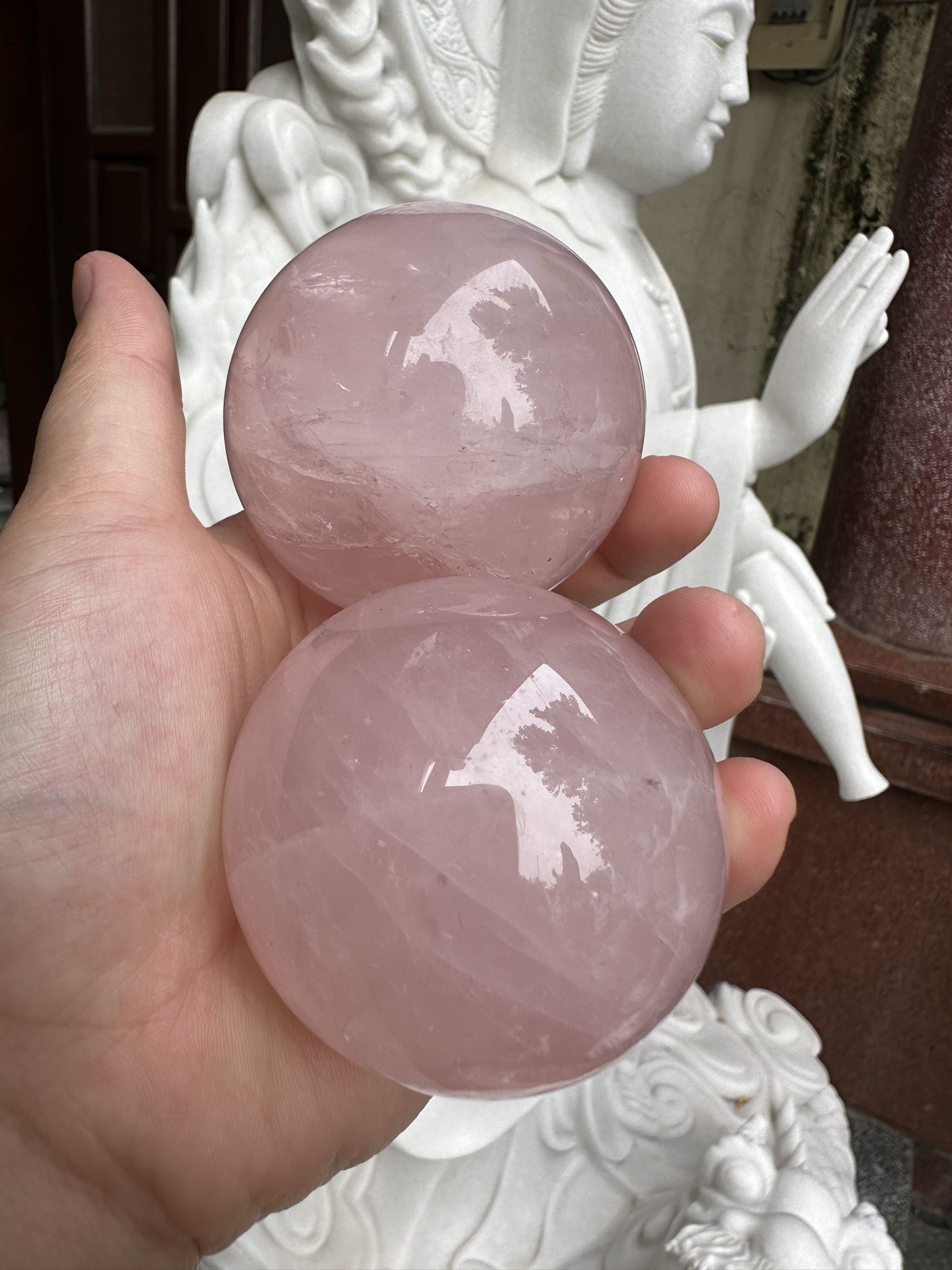 Quả cầu thạch anh hồng phong thủy
