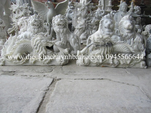 Tượng Kỳ Lân đá trắng non nuoc nguyên khối cao 2.2m
