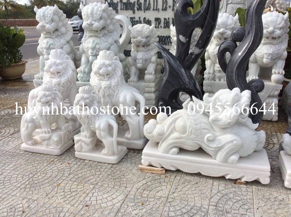 Sư tử và Tỳ hưu đá trắng nguyên khối