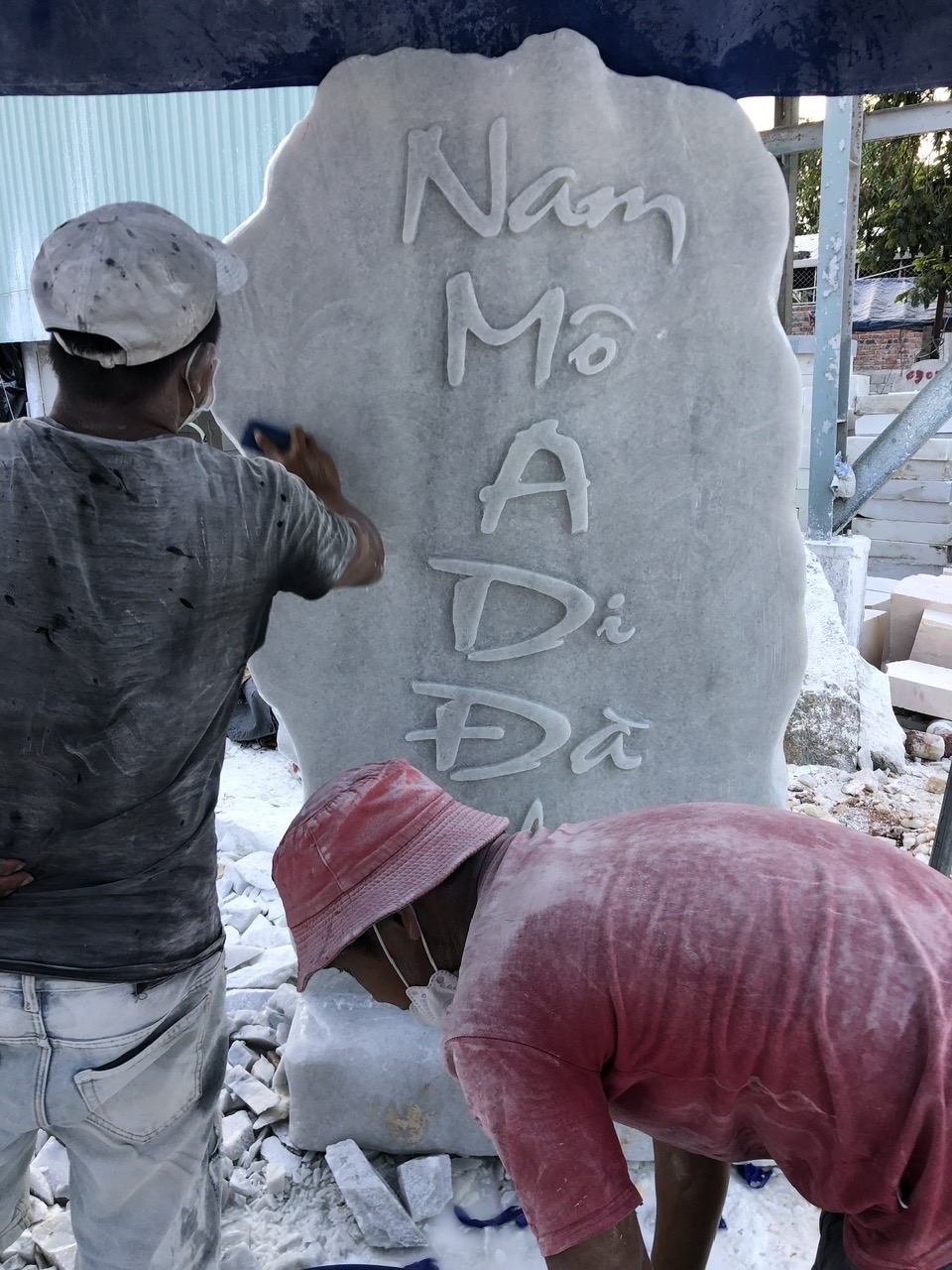 Tôn tượng Phật Địa Tạng Vương Bồ Tát cao 2m tuyệt đẹp đá nguyên khối - đang hoàn thiện mài bóng.