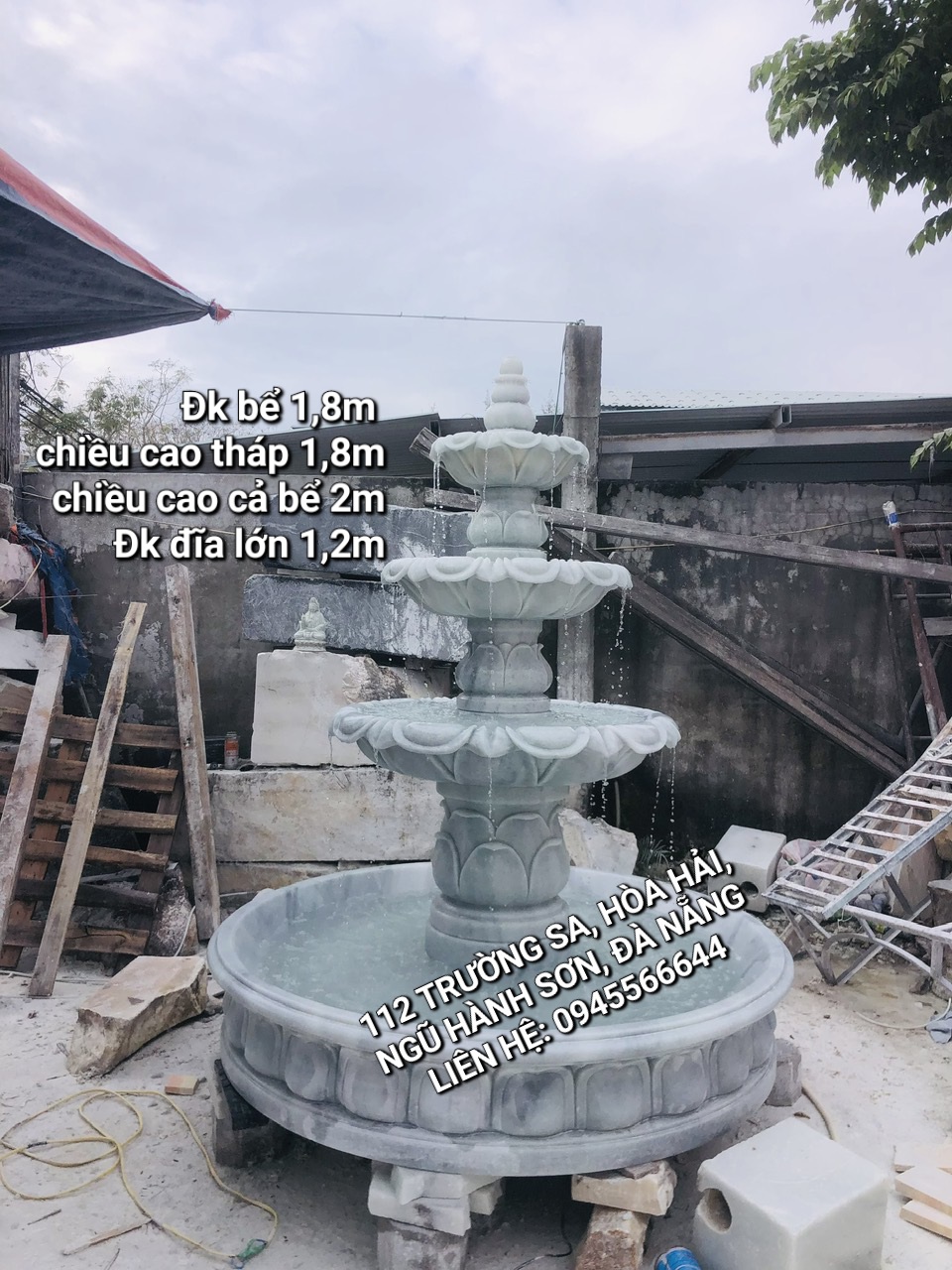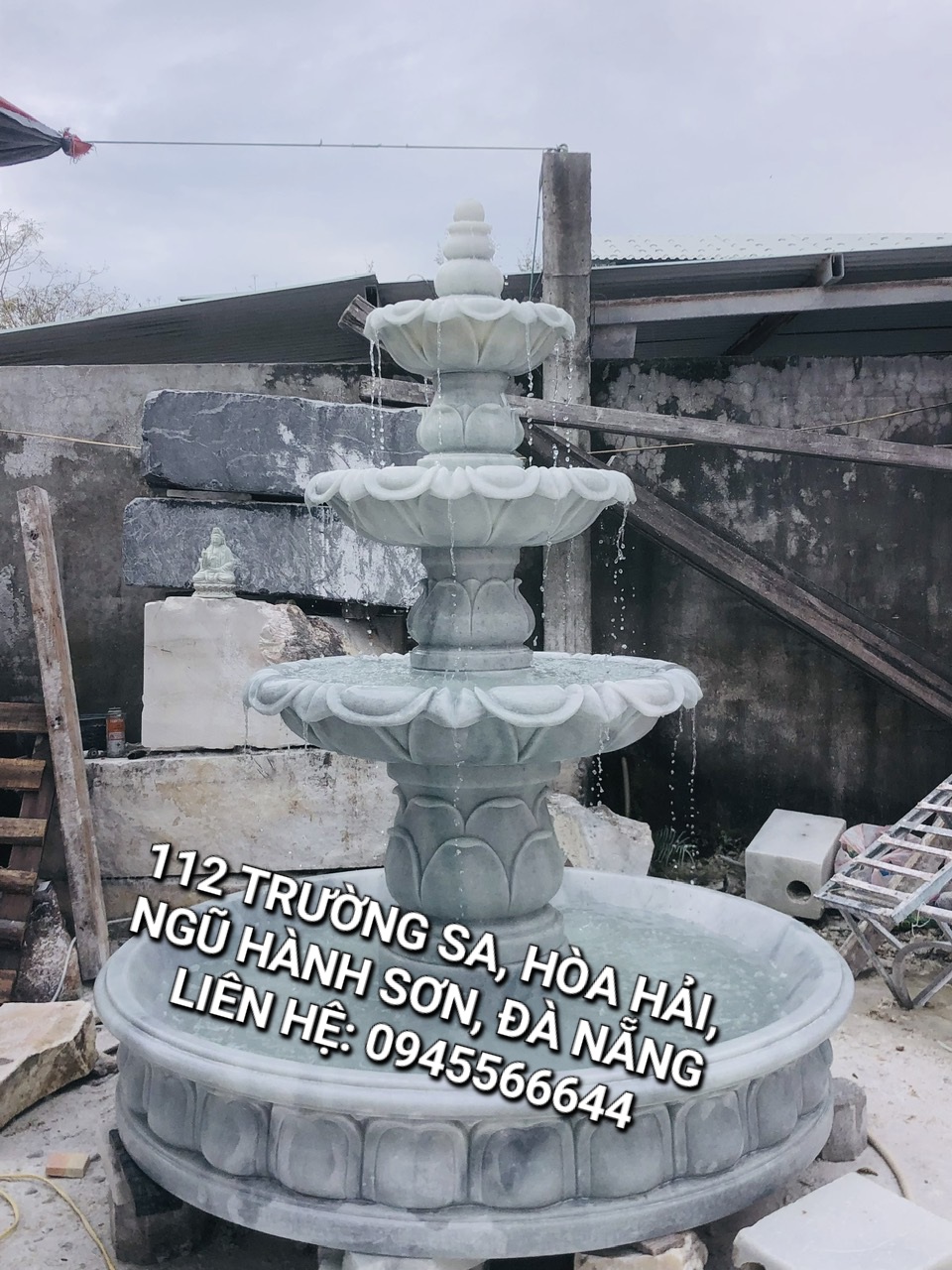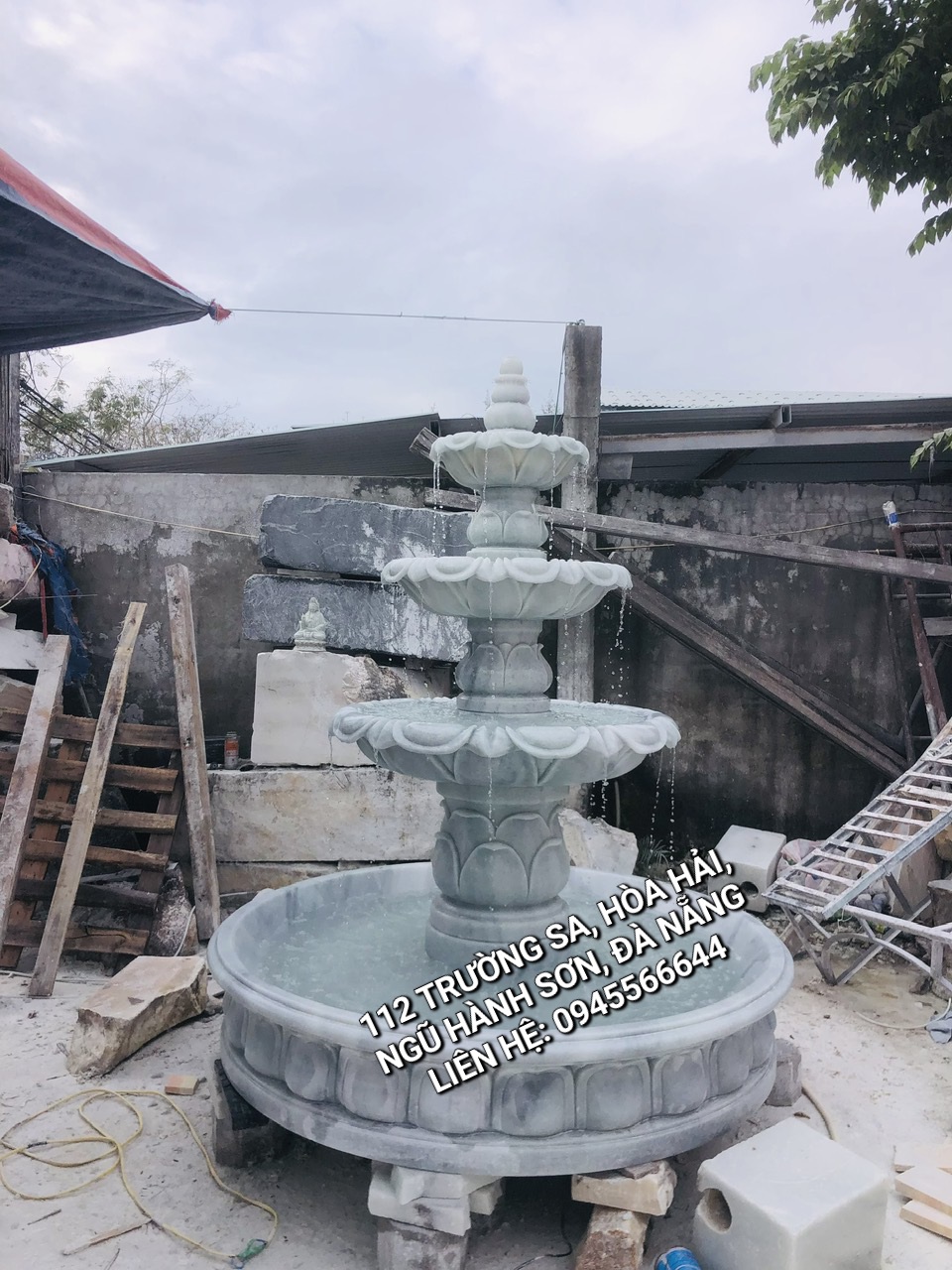 Tháp nước bằng đá 4 tầng cao 1,8m nguyên khối.