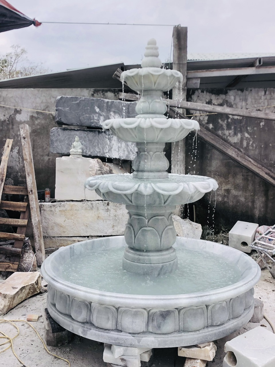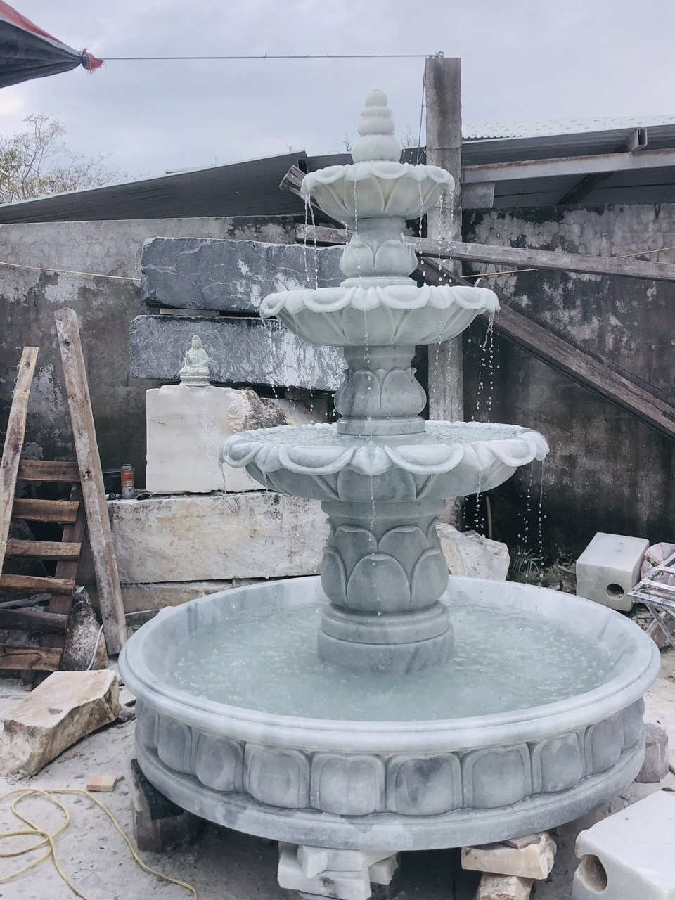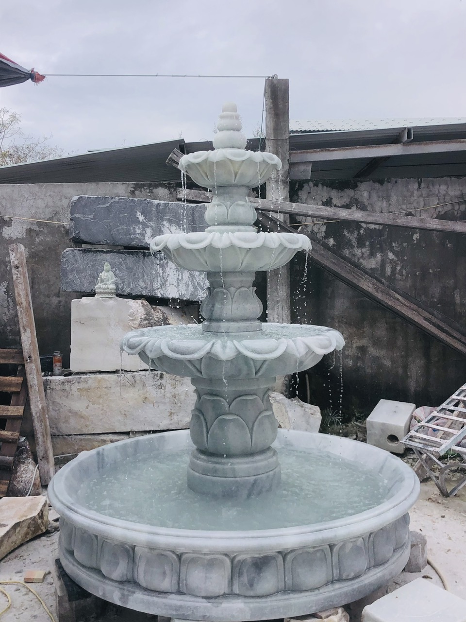 Tháp nước bằng đá 4 tầng cao 1,8m nguyên khối.