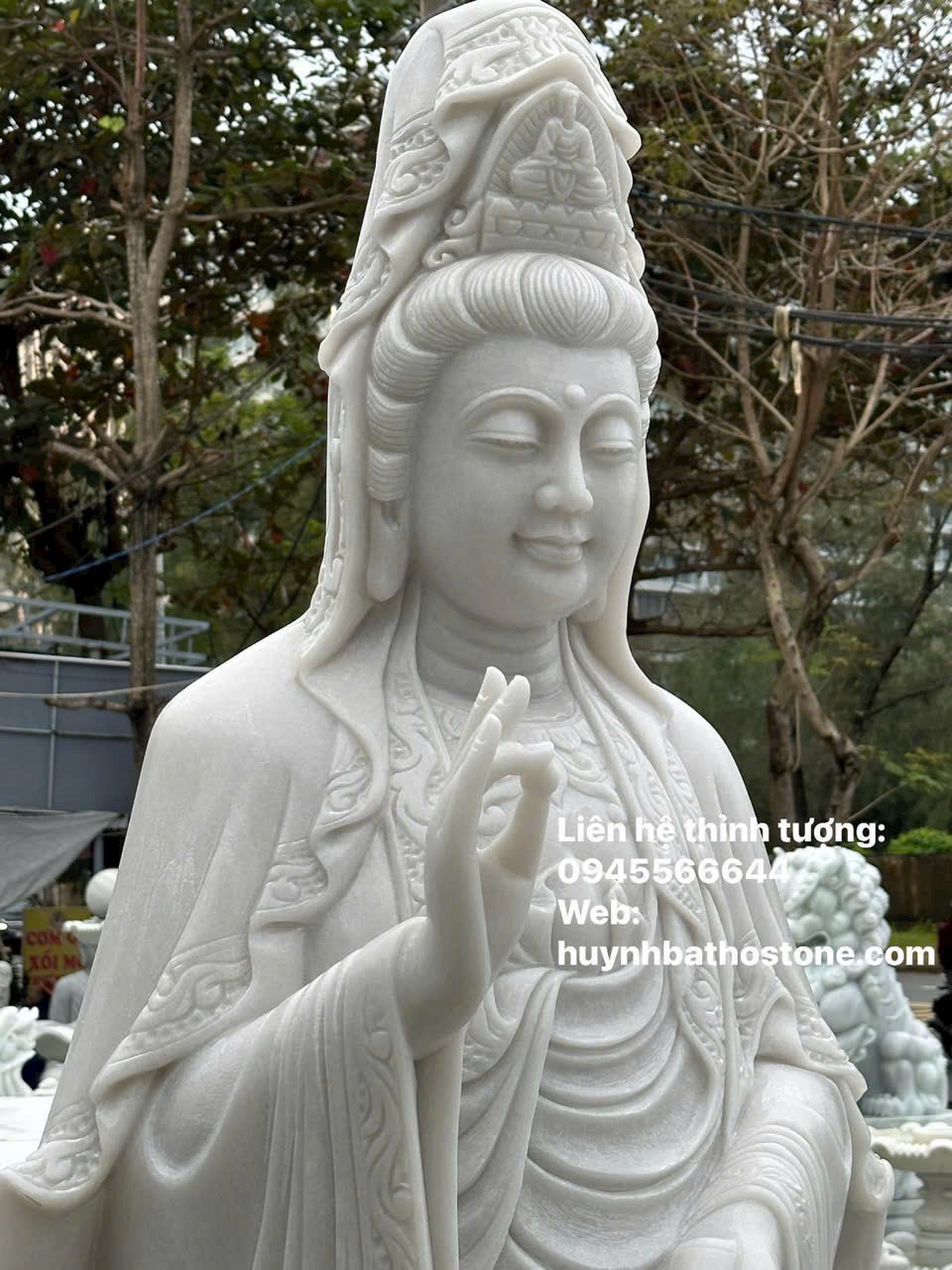 TÔN TƯỢNG ĐỨC PHẬT QUÁN ÂM BẰNG ĐÁ CAO 3M TUYỆT ĐẸP
