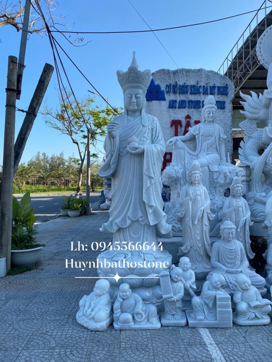 Tượng Bổn Sư cao 1,7m đá trắng mịn nguyên khôi