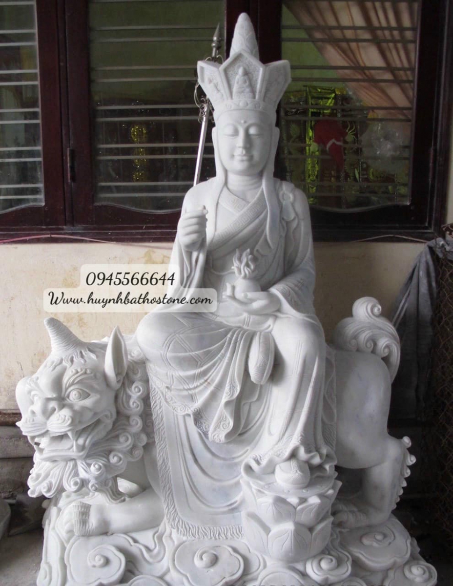 Chất liệu: Đá Cẩm Thạch Trắng nguyên khối. Kích thước: cao 2m (nhận tạc theo kích thước khách yêu cầu). Cách sử dụng: Tượng Địa Tạng Vương Bồ Tát được thờ trong các chùa, tượng Địa Tạng Vương Bồ tát thường được đặt bên phải, tượng Phật Bà Quán Thế Âm đặt bên trái và tượng Đức Phật Bổn Sư đặt chính giữa.Hoặc thường được thờ tại nghĩa trang hoặc nơi lưu giữ hài cốt với mong muốn Ngài có thể dẫn dắt hương linh thoát khỏi chốn u đồ tối tăm, về với ánh sáng Phật pháp; thoát khỏi khổ đau luân hồi sinh tử. Giá thỉnh tượng: Qúy Thầy và quý Phật Tử vui lòng liên hệ sđt 0945566644. ý nghĩa của Tôn tượng Bồ Tát Địa Tạng ngồi trên Đề Thính: Tượng Địa Tạng Vương Bồ tát ngồi trên linh thú Đề Thính, là linh thú có khả năng nghe thấy mọi thứ trong Tam Thế, giúp Địa Tạng Vương Bồ Tát phân biệt được thật giả, đúng sai.