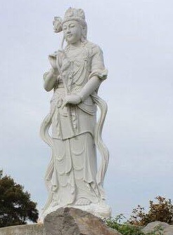 Tượng phật Quan âm đứng rồng bằng đá nguyên khối cao 1m.