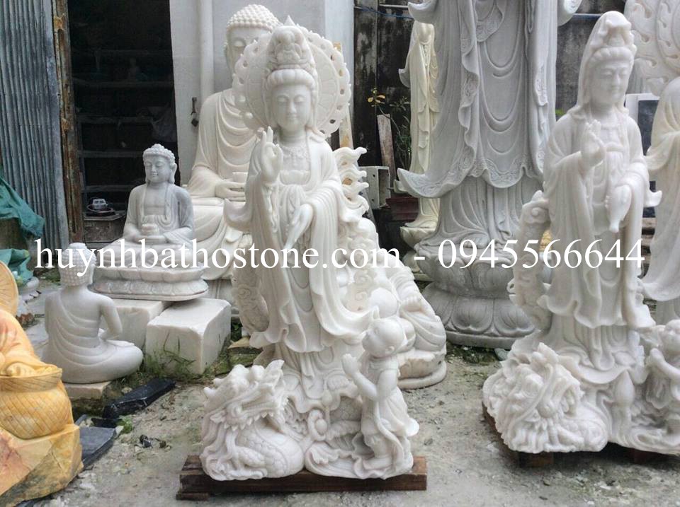 Theo phong thủy của bức tượng quan âm cưỡi rồng đá mỹ nghệ non nước như sau: Quan âm cưỡi rồng hiển linh là để cứu nhân sinh thoát khỏi cuộc sống đau khổ. Khi thờ cúng tượng phật trong nhà của bạn, mọi xung đột, mâu thuẫn hay gúc mắt hiểu lầm giữa mọi người thân trong gia đình hay xã hội đều nhanh chóng tan biến, nhanh chóng hóa hận thù thành tình thân, yêu thương. Có nhiều tượng Quan Âm đứng hoặc ngồi trên tòa sen, nhưng bức tượng này Quan Âm lại đứng trên hình tượng 1 con rồng dũng mãnh, vô cùng uy nghiêm. Vị Quan âm đứng trên thân mình rồng với dáng khoan thai, 2 tay đở lấy bình ngọc đổ nước Cam lộ xuống trần để dặt tắt lửa lòng chúng sinh trong dương thế. Với chạm khắc tinh tế, thiết kế tinh xảo, bức tượng như là hình tượng sống thật, một tác phẩm nghệ thuật hoàn hảo, rất phù hợp thờ phụng cho nhiều gia đình và các chùa.