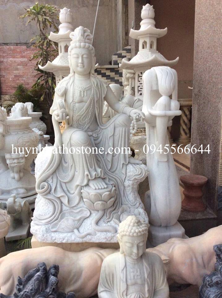 • Điêu khắc đá mỹ nghệ Non Nước Huỳnh Bá Thơ chuyên điêu khắc trực tiếp  tượng phật Bồ Tát Quan Âm Tự Tại đá trắng nguyên khối.