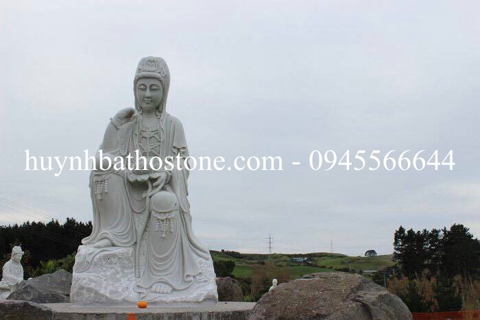 Tượng ngài Quán Tự Tại đá trắng xanh non nước đẹp