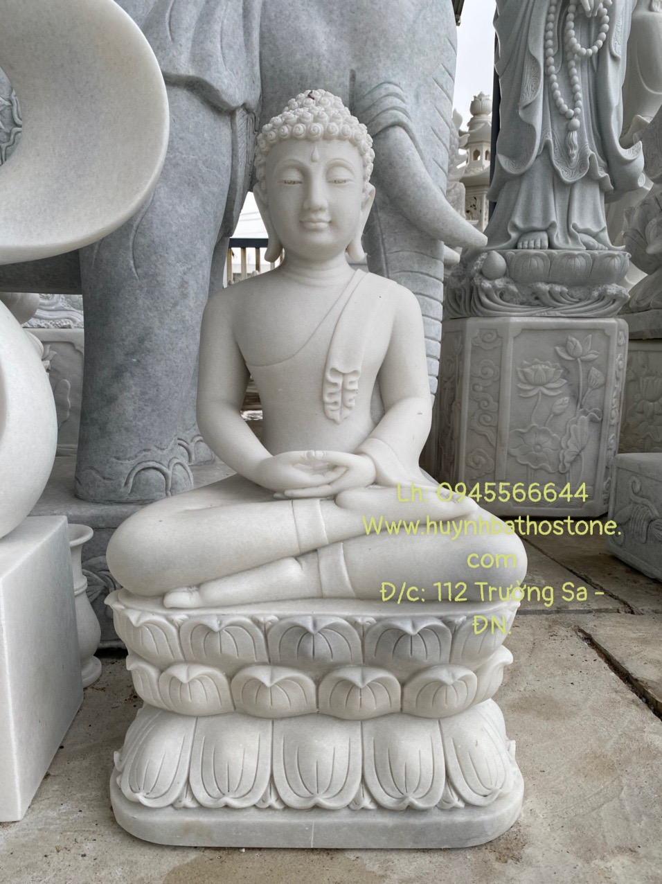 Tượng Bổn Sư đá trắng mịn tố hảo - Thích Ca bằng đá cao 85cm.