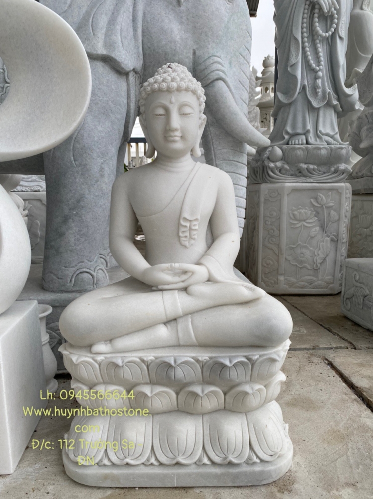 TÔN TƯỢNG NGÀI BỔN SƯ THÍCH CA ĐÁ TRẮNG MỊN NGUYÊN KHỐI TUYỆT ĐẸP