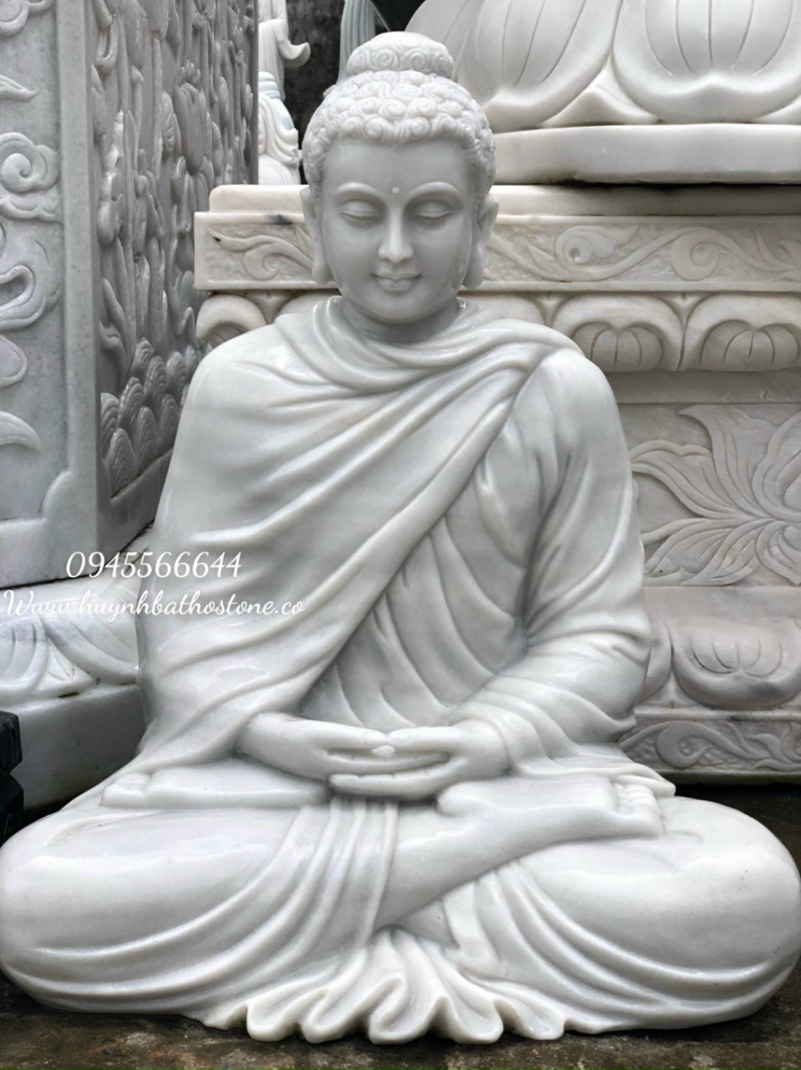 Tượng Bồ Đề Đạt Ma đá trắng nguyên khối