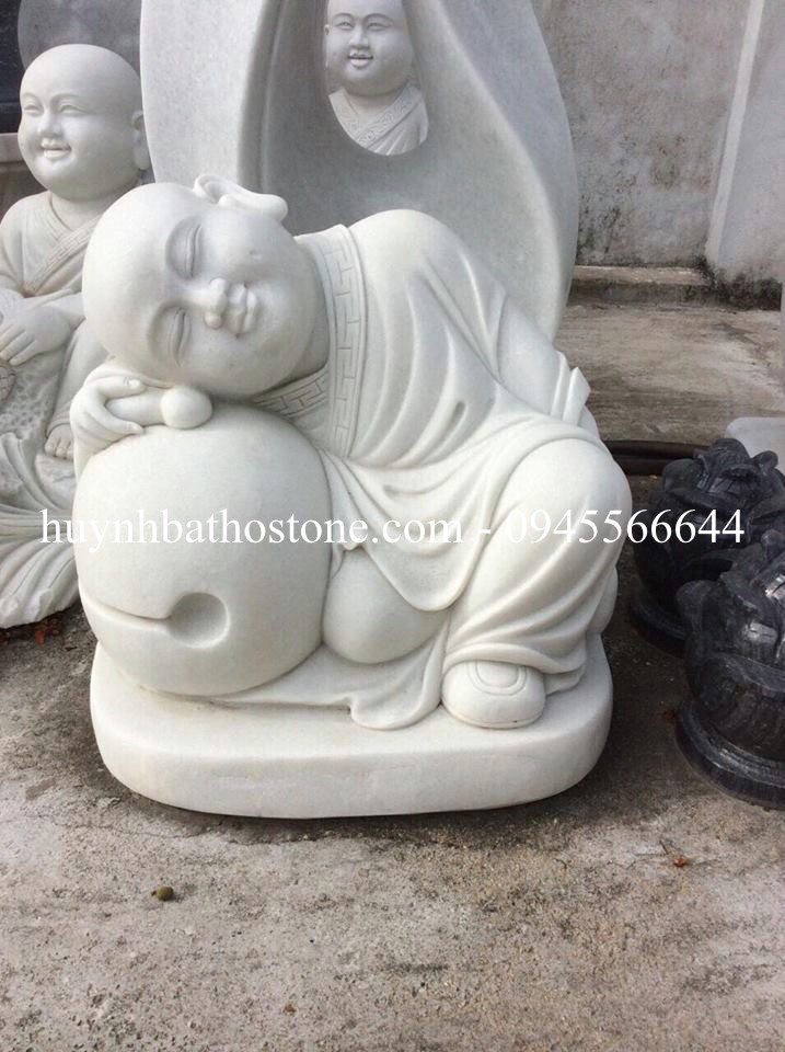 Tượng chú tiểu đá trắng nguyên khối