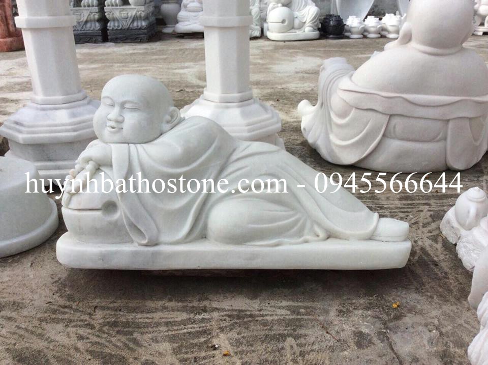 Tượng Phật Di Lặc đá trắng xanh vạn sự như ý 21cm