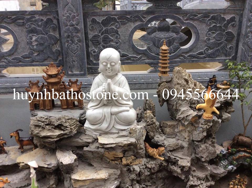 Tượng chú tiểu đá trắng nguyên khối