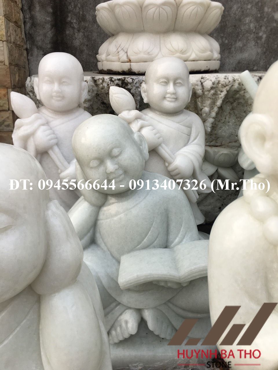 Tượng chú tiểu đá trắng nguyên khối