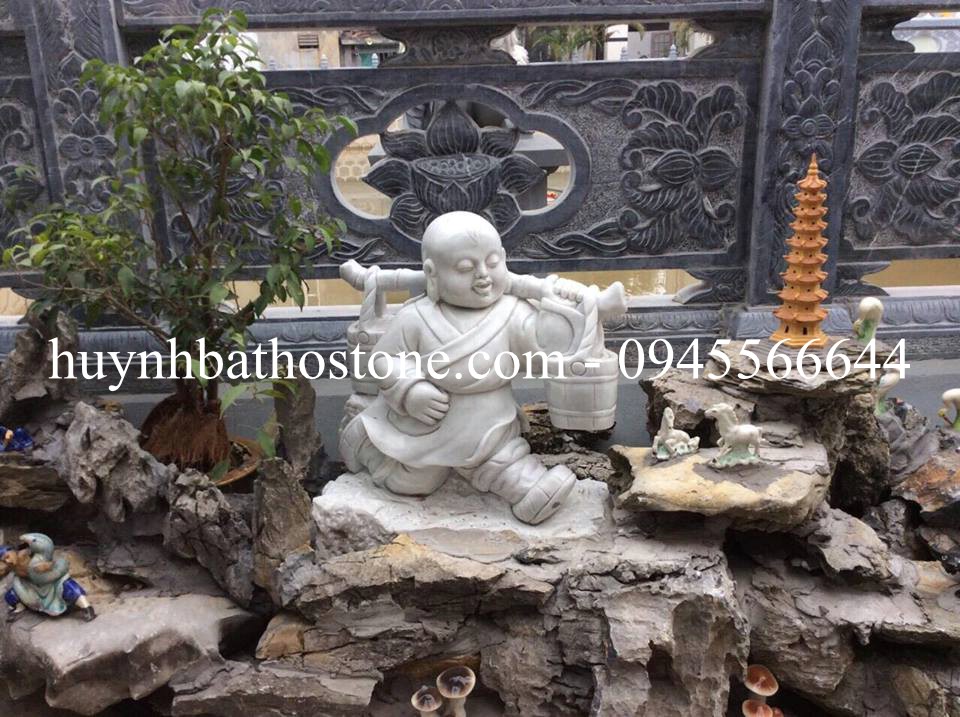 Tượng chú tiểu gánh nước đá trắng nguyên khối