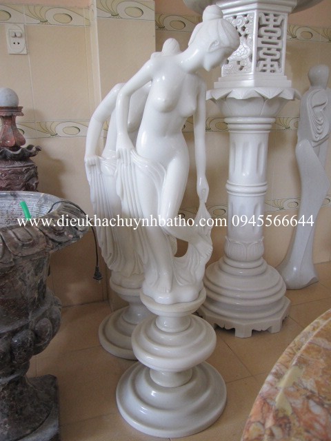 Tượng Bồ Tát Văn Thù - Phổ Hiền đá trắng nguyên khối