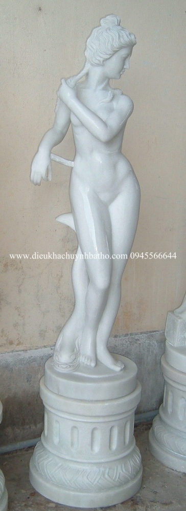 Tượng Phật Quan âm đứng đá trắng xanh cao 2,5m.