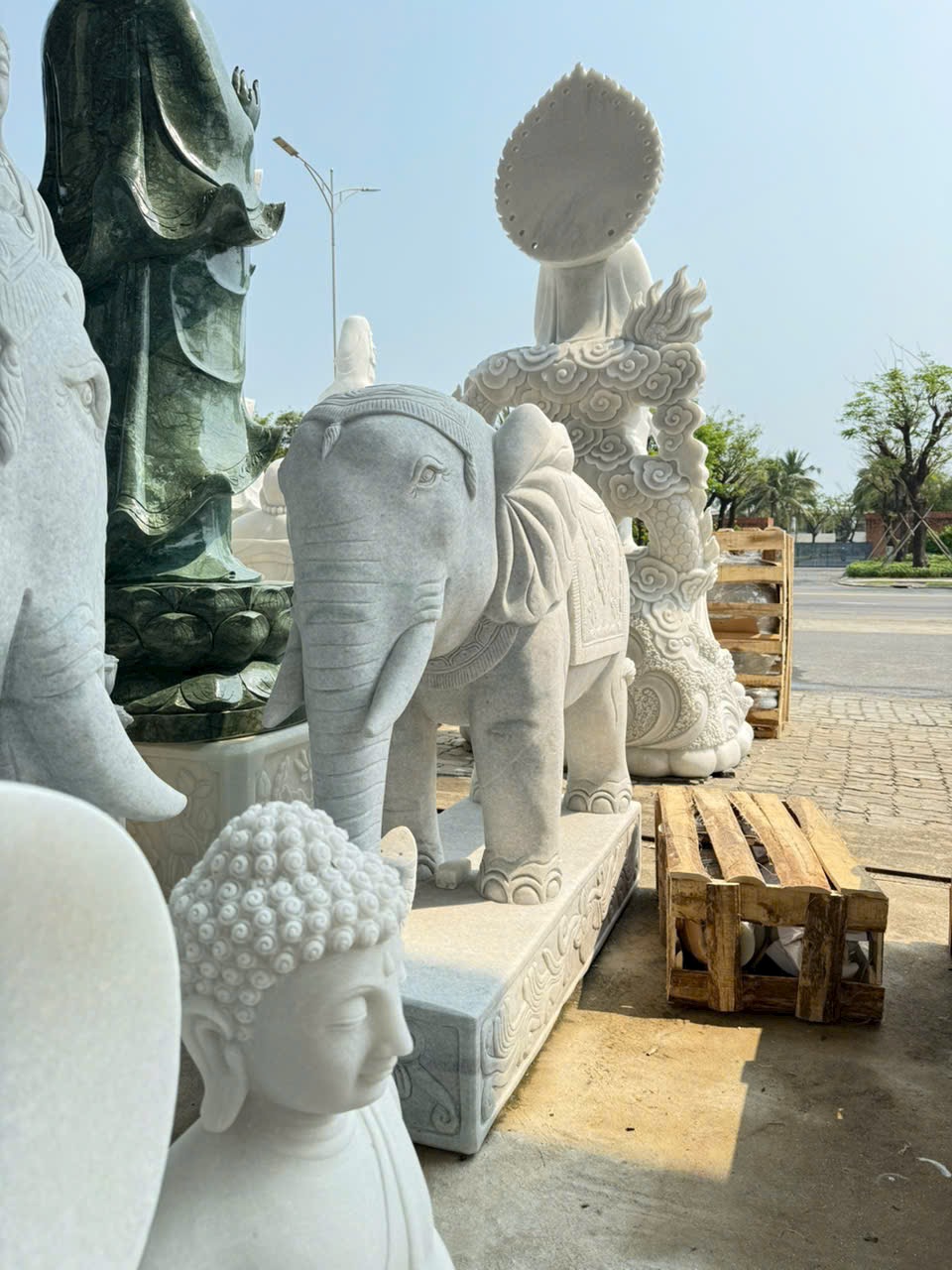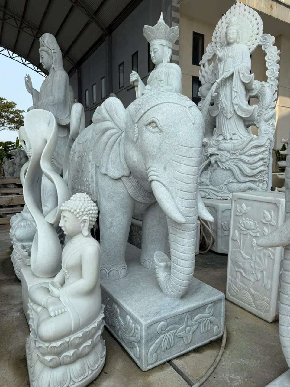 Tượng ngài Quán Tự Tại đá trắng xanh non nước đẹp