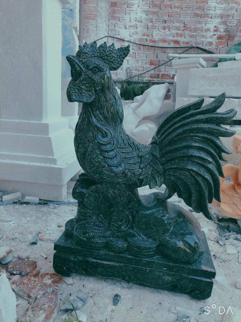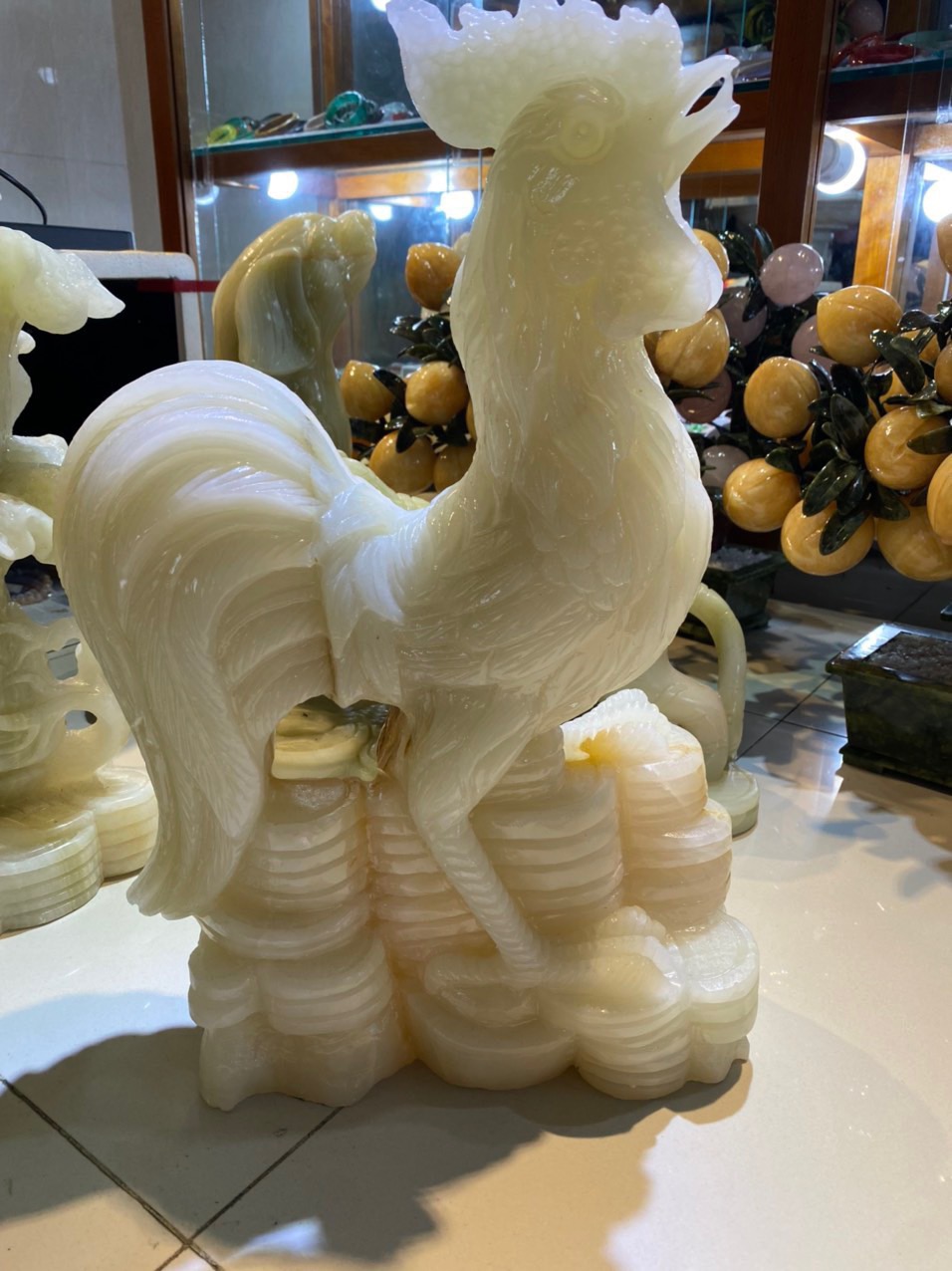 TƯỢNG CON GÀ TRỐNG BẰNG ĐÁ VÀNG CÀ RỐT CAO 70CM TRONG PHONG THUỶ.