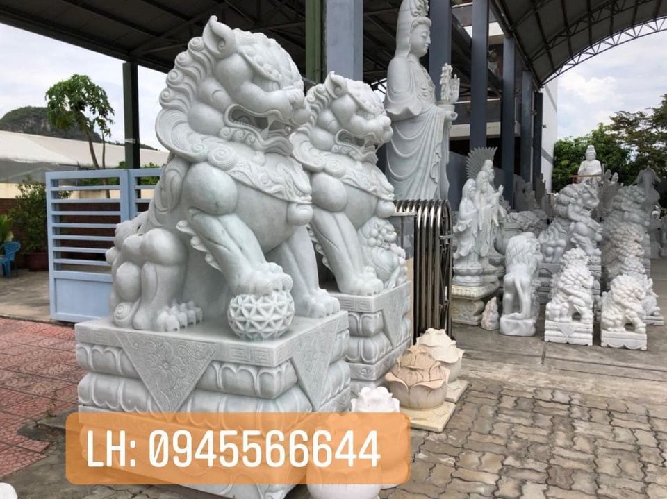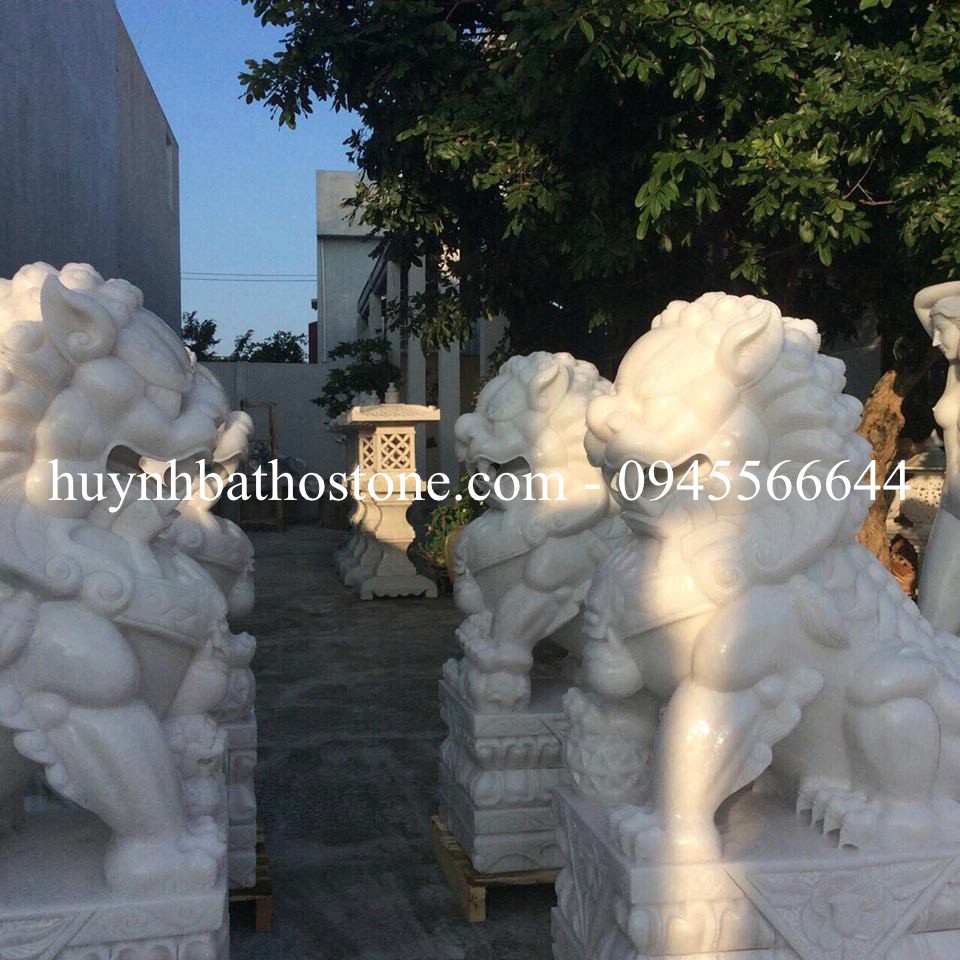 Tượng Kỳ Lân đá trắng non nước nguyên khối cao 80cm tại cơ sở điêu khắc đá mỹ nghệ non nước Huỳnh Bá Thơ. Trong truyền thuyết, Kỳ Lân đá là một loài linh thú thuộc tứ linh “Long, Lân, Quy, Phượng”. Nó mang trong mình một nguồn sức mạnh và sự thần bí linh thiêng. Kỳ Lân đá có phần đầu giống rồng, có hai sừng, thân hình giống hươu, phủ đầy vảy, lông đuôi dài, cuộn sóng. Thoạt nhìn, hình dáng và thần thái của Kỳ lân trông rất sinh động, mạnh mẽ, thần bí và tràn trề sức sống.