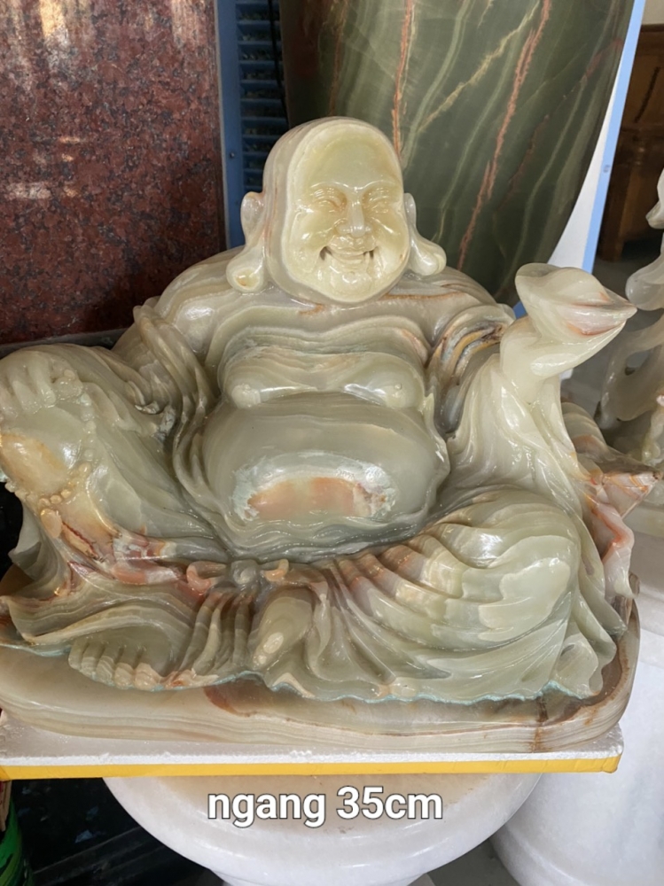 Tượng ngài Di Lặc ngồi chiều ngang 35cm đá ngọc