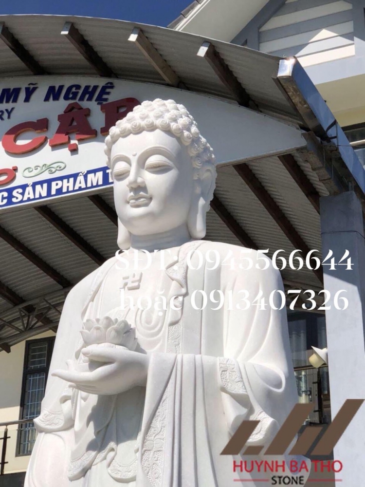 Tượng Phật A Di Đà  đá trắng nguyên khối *  LIÊN HỆ: CƠ SỞ ĐIÊU KHẮC ĐÁ HUỲNH BÁ THƠ  (Cơ sở chuyên điêu khắc trực tiếp tượng phật từ đá tự nhiên nguyên khối. Nhận tạc theo mẫu mã khách yêu cầu).