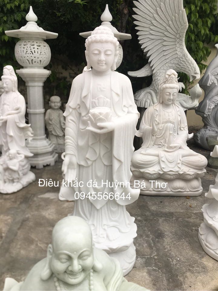 Tượng Phật A Di Đà  đá trắng nguyên khối *  LIÊN HỆ: CƠ SỞ ĐIÊU KHẮC ĐÁ HUỲNH BÁ THƠ  (Cơ sở chuyên điêu khắc trực tiếp tượng phật từ đá tự nhiên nguyên khối. Nhận tạc theo mẫu mã khách yêu cầu).