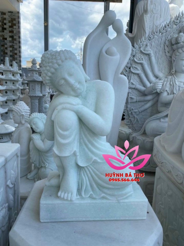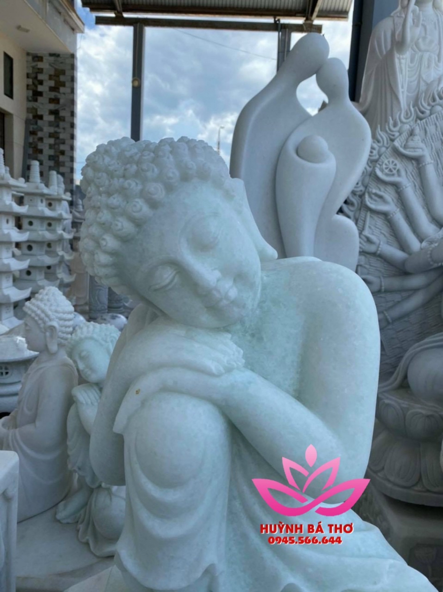 White Marble Kwan Yin Sculpture Sitting on Lotus