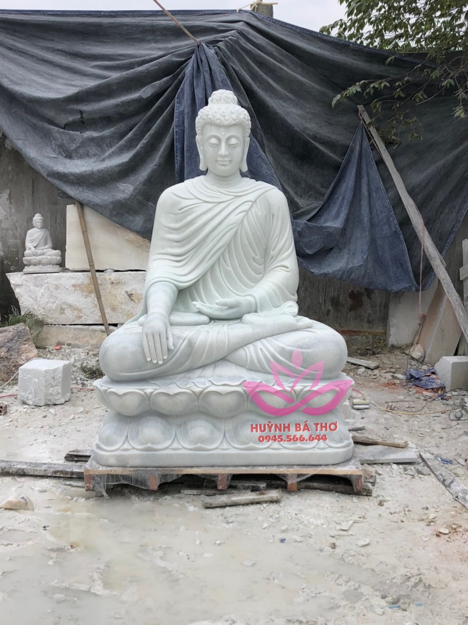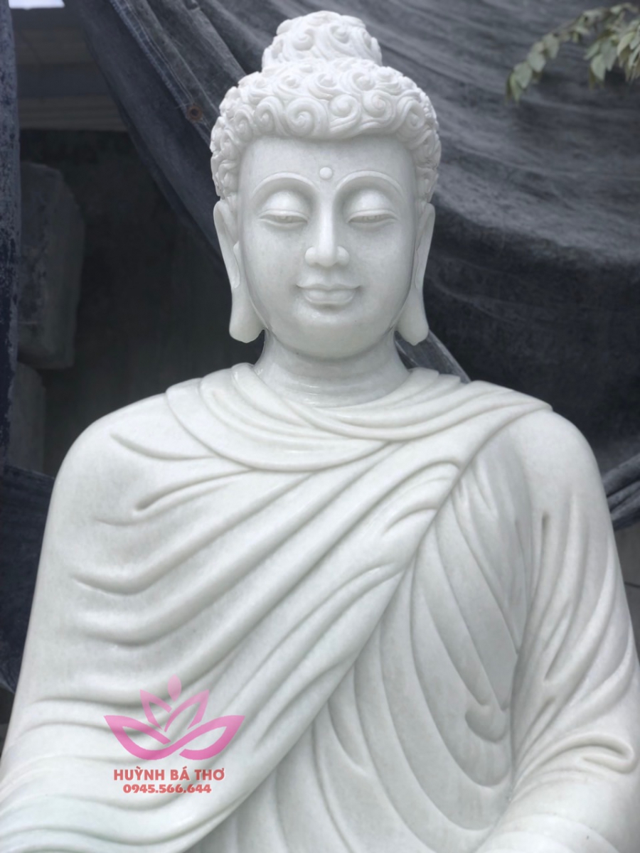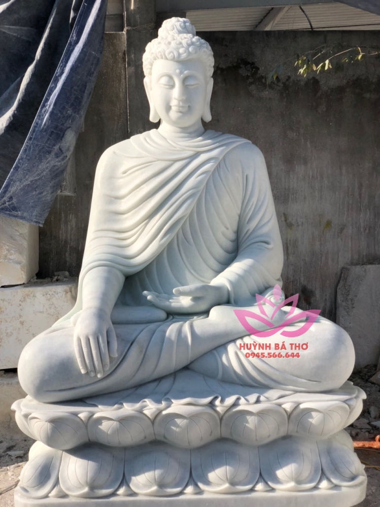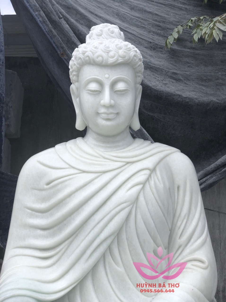 TƯỢNG PHẬT BỔN SƯ bằng đá trắng nguyên khối.