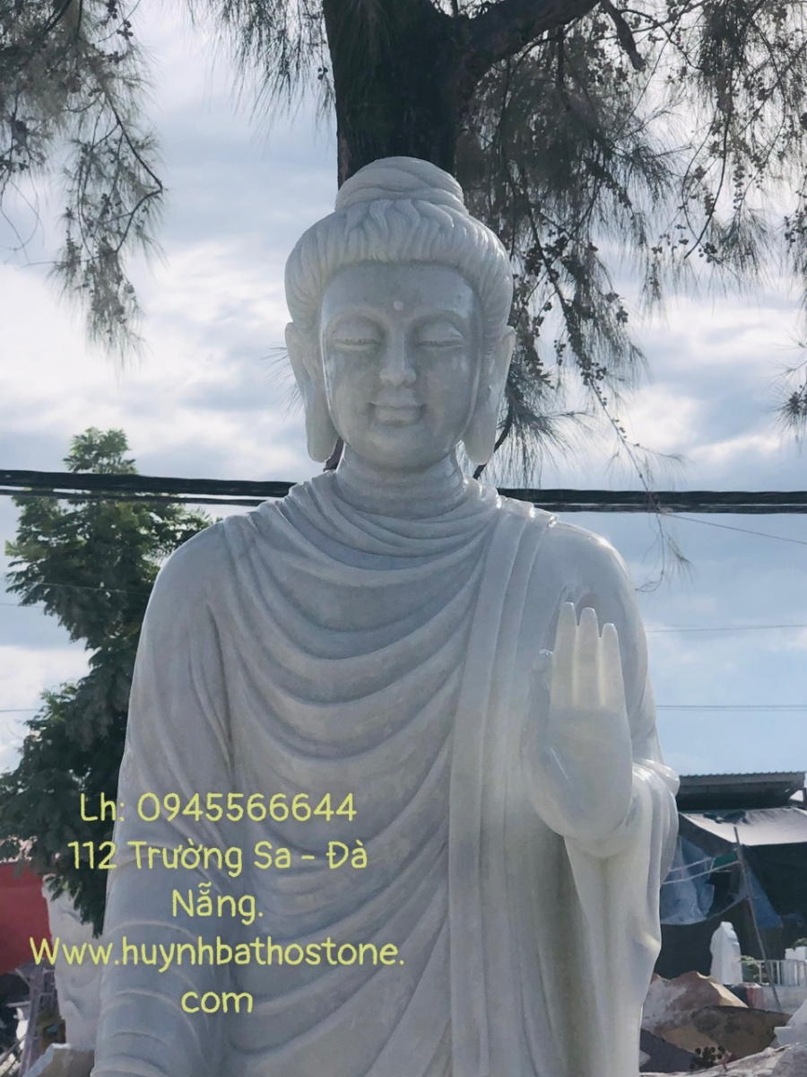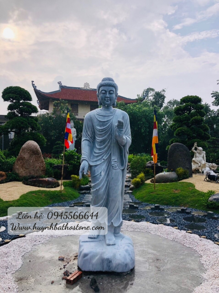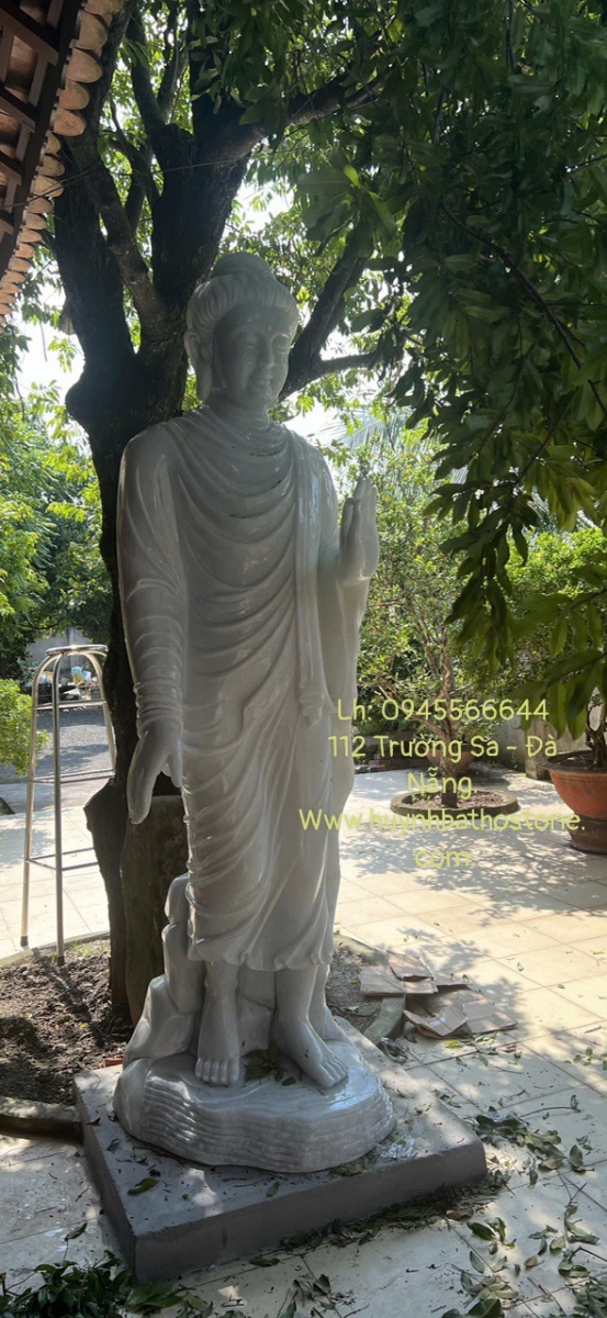 Tượng Phật Bổn Sư Thích Ca Ban Phước tuyệt đẹp bằng đá nguyên khối - tượng Phật Thích Ca đứng bằng đá non nước - 1m- 16 triệu.