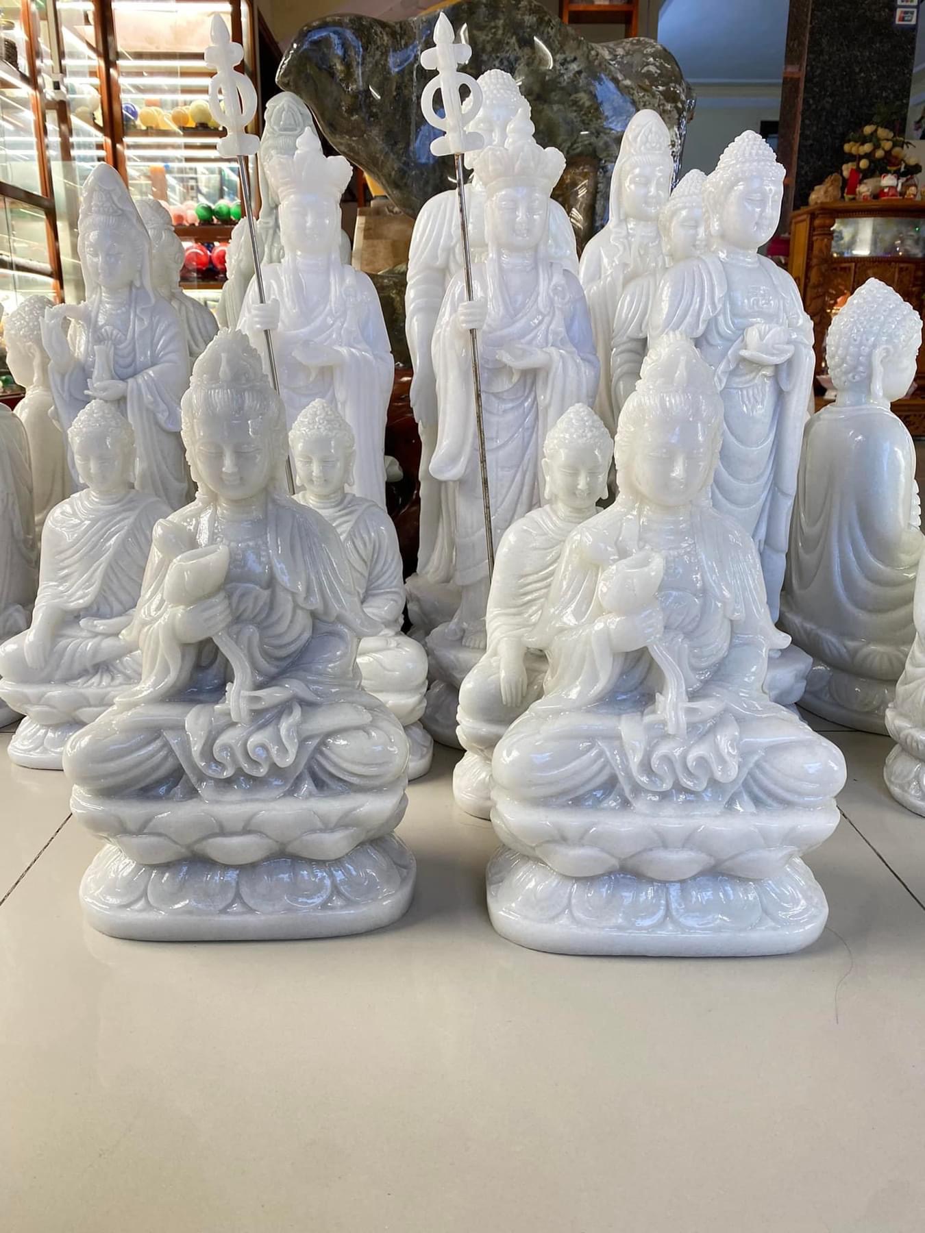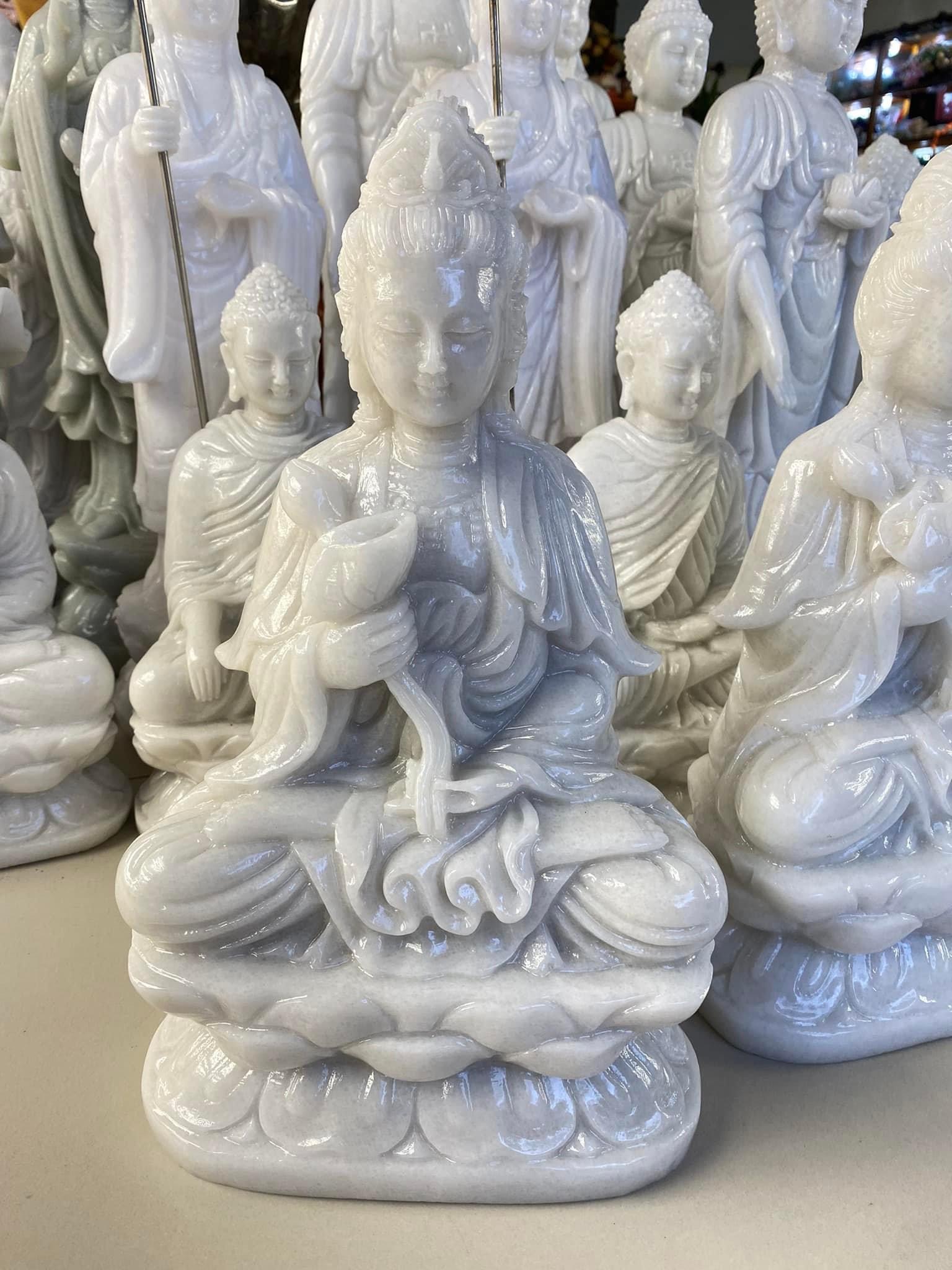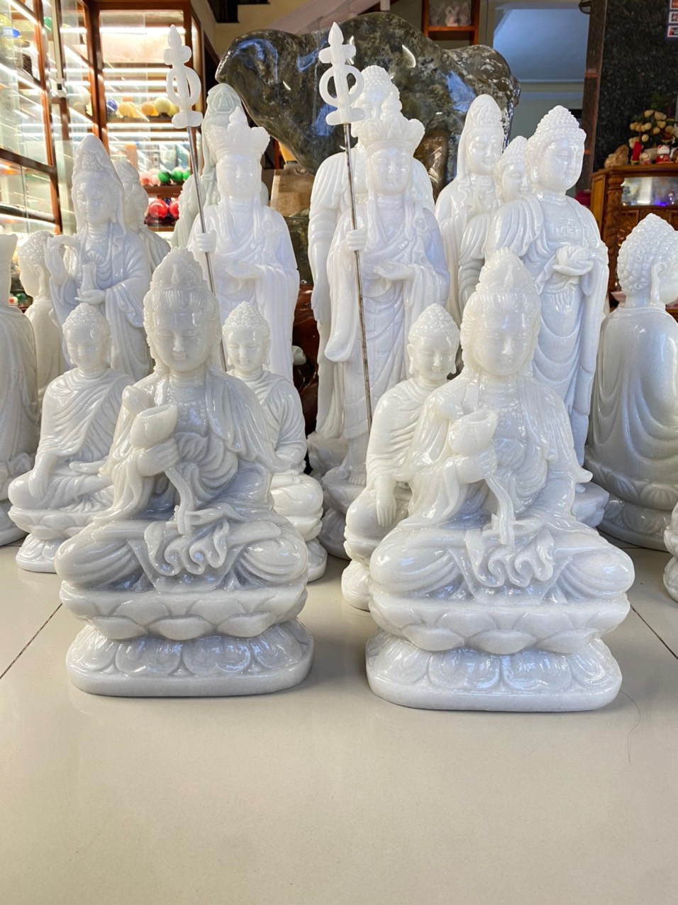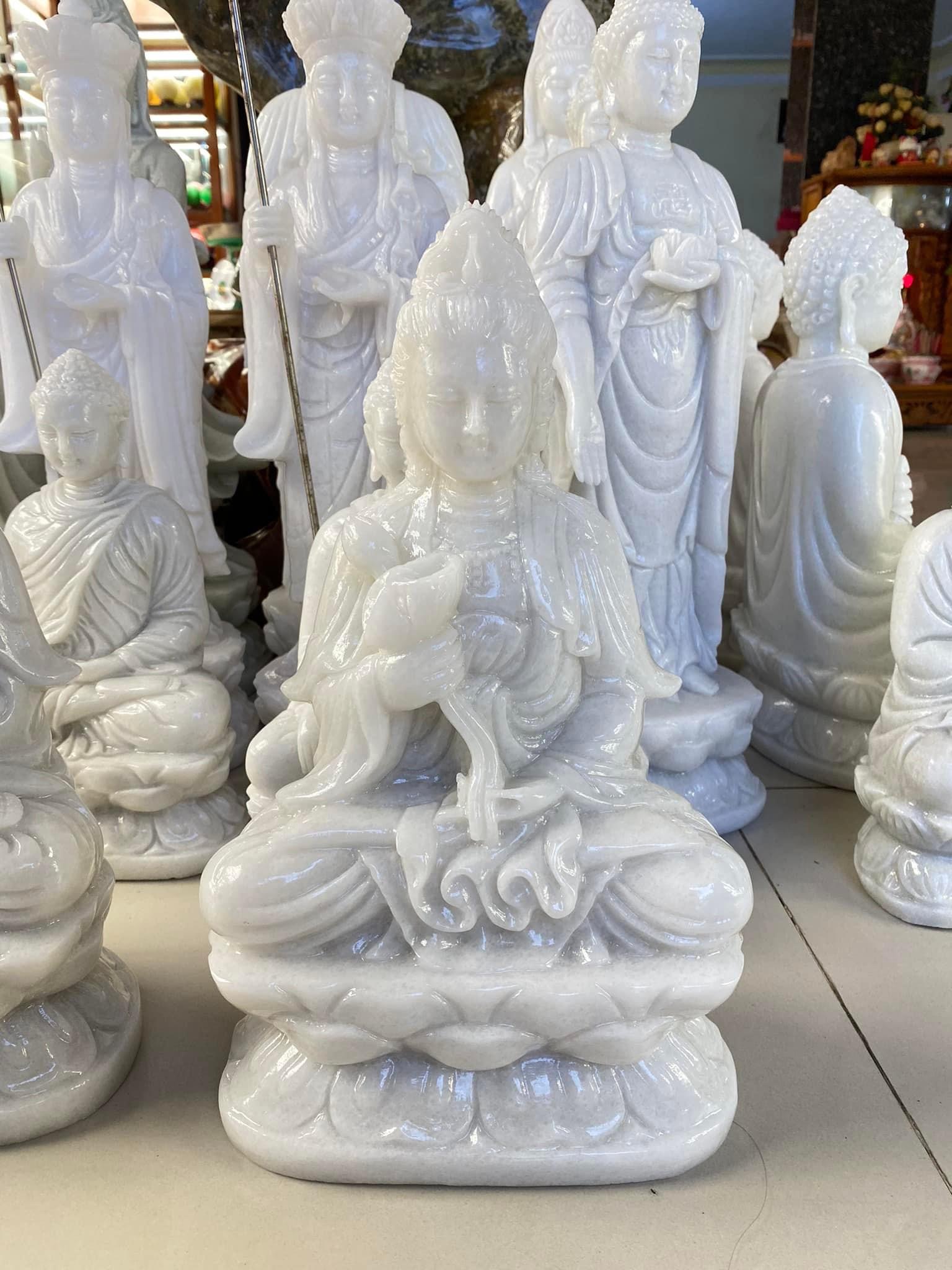 Tượng Phật đại thế chí Bồ tát cao 35cm đá Cẩm thạch trắng nguyên khối.