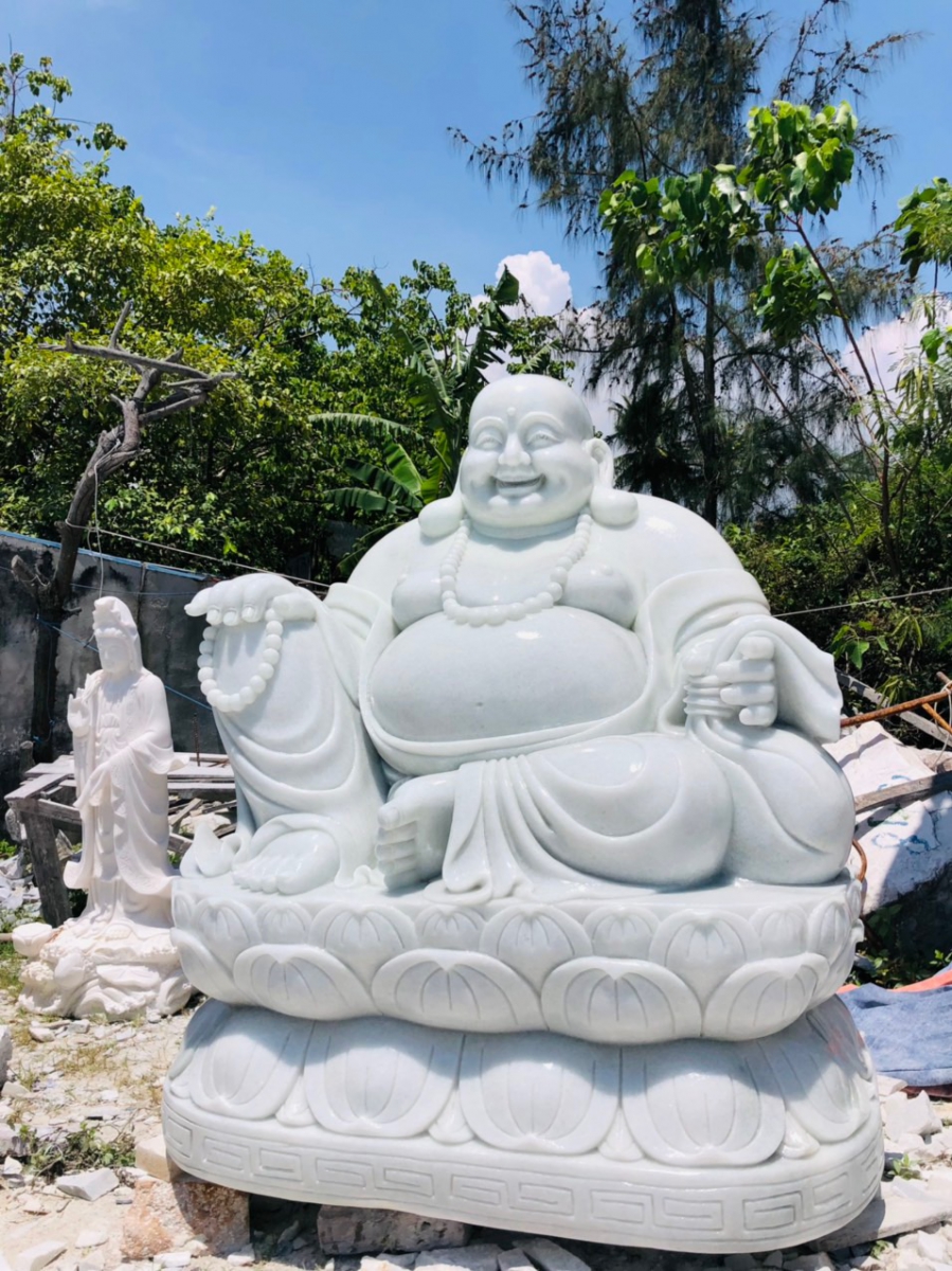 + Tượng phật Di Lặc đá trắng tự nhiên được sản xuất tại Cở sở điêu khắc đá non nước HUỲNH BÁ THƠ Tượng phật Di Lặc là một trong những hình tượng quen thuộc trong tín ngưỡng Phật Giáo dân gian, là biểu tượng cho sự hoan hỉ hạnh phúc của con người. Phật Di Lặc còn được biết đến qua những cái tên dân dã, gần gũi như: Phật cười, Phật bụng bự, Phật Mập …