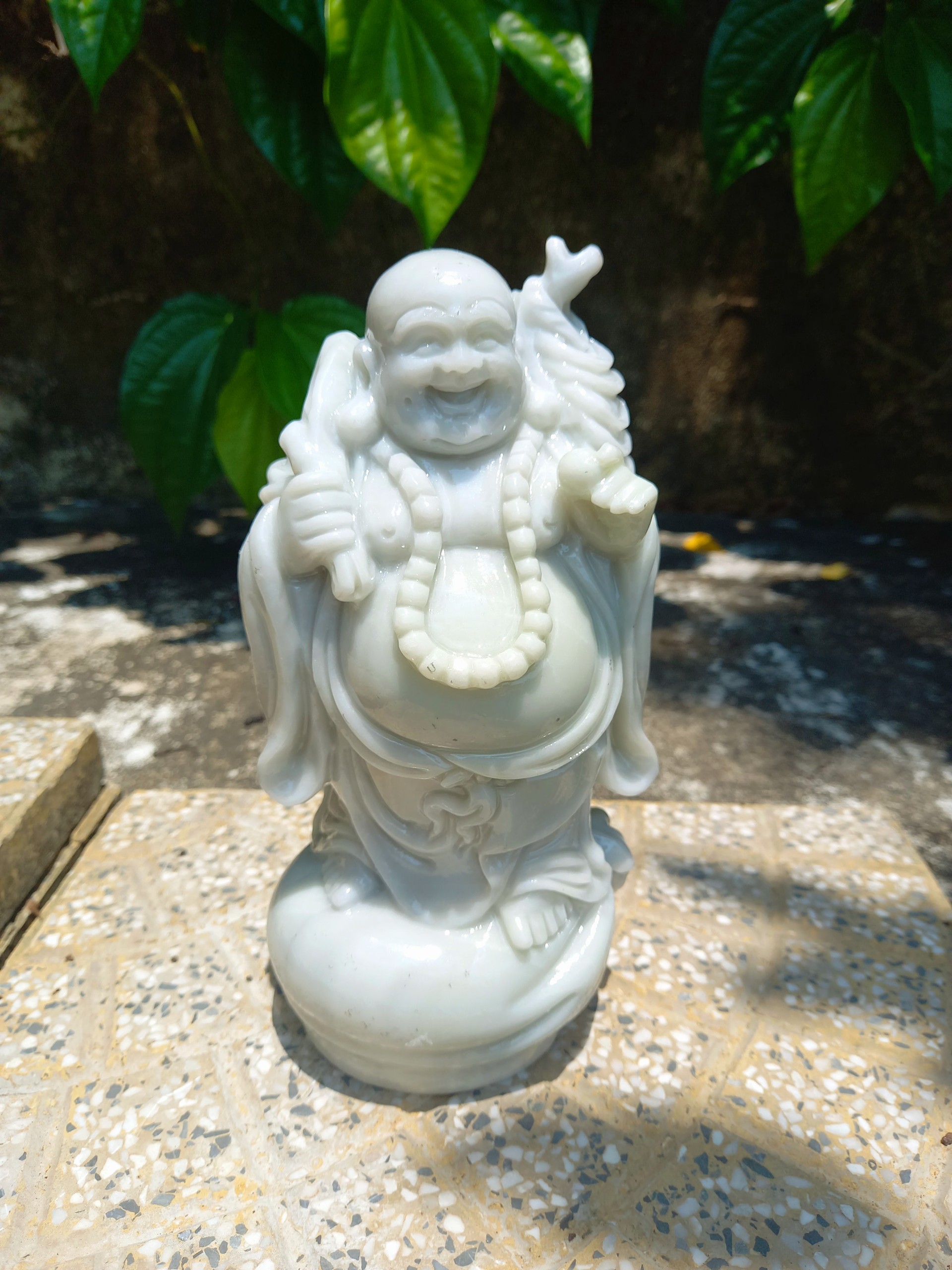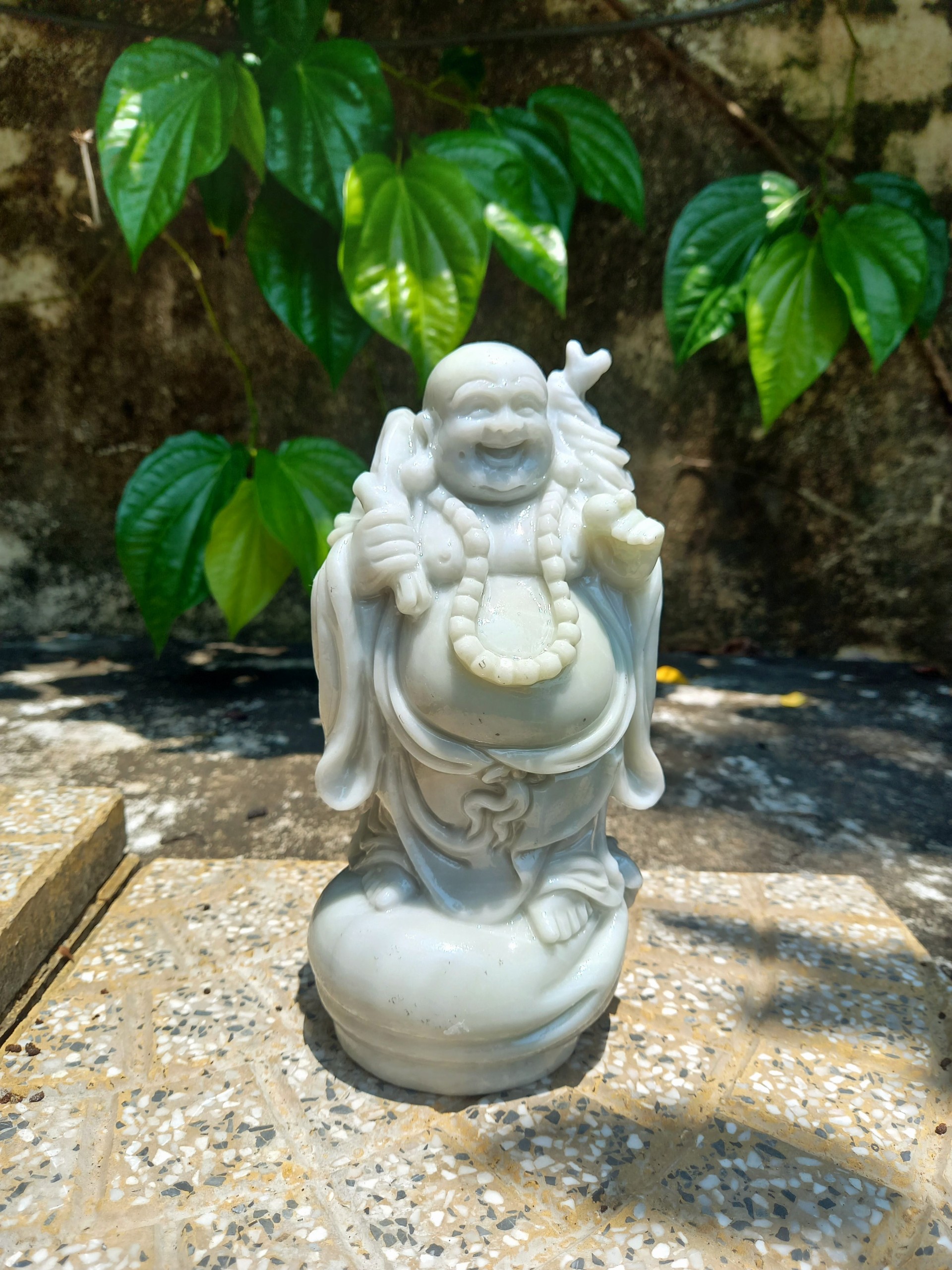 Tượng Phật Di Lặc vac túi tiền đá trắng xanh 21cm