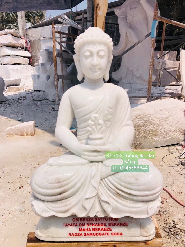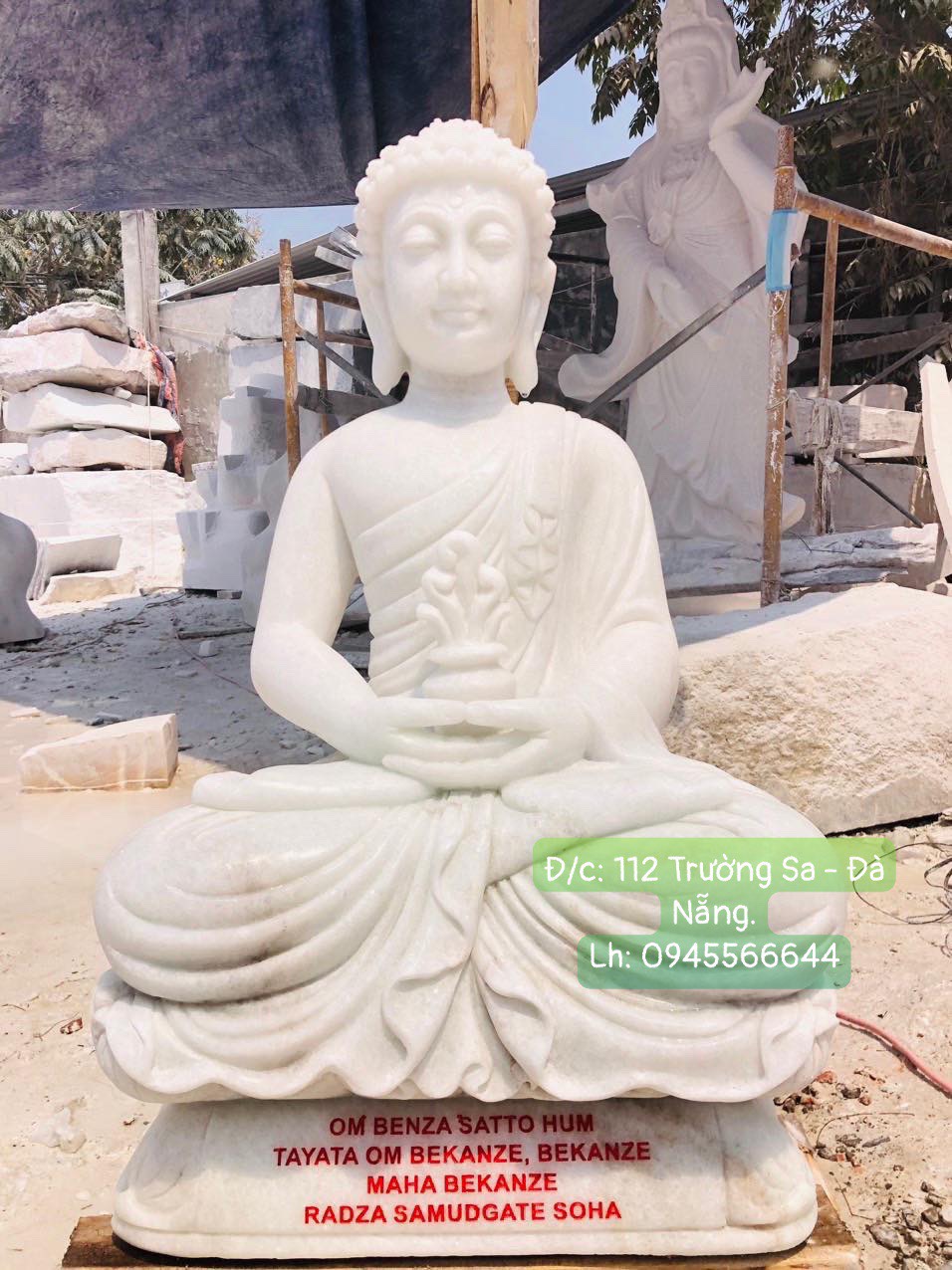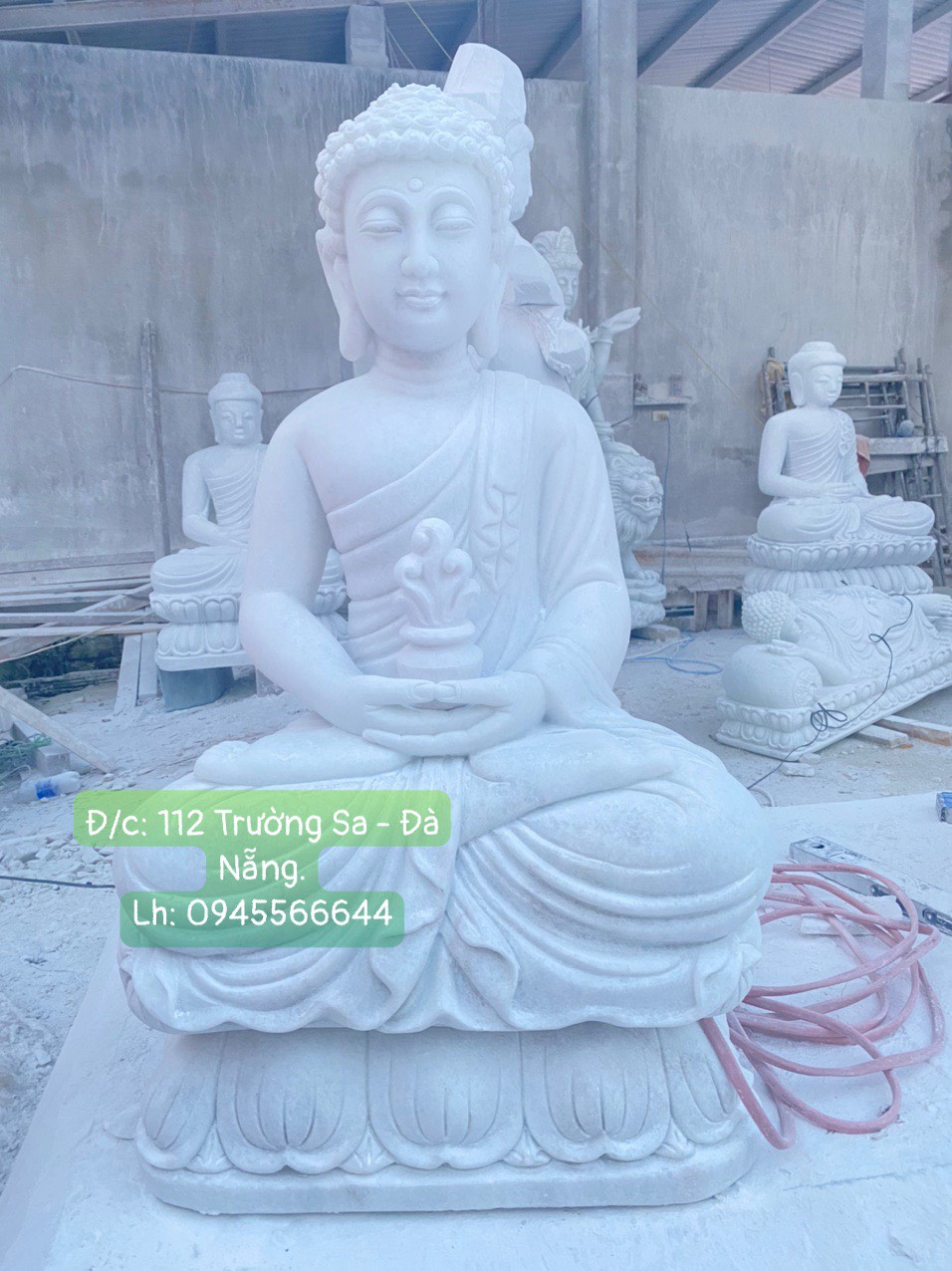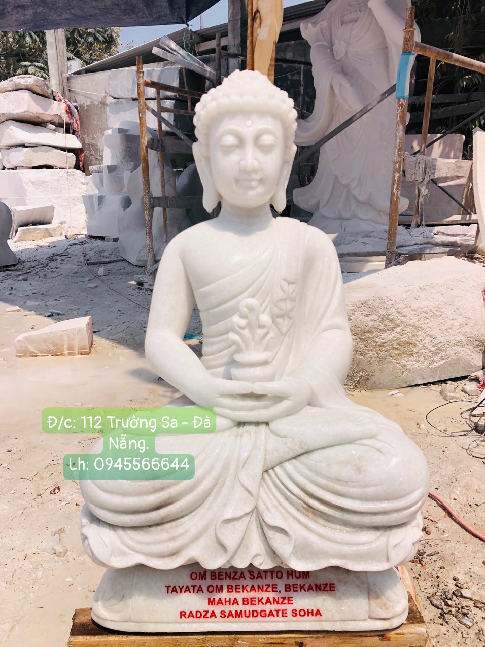 Tượng Phật Dược Sư 70cm đá trắng non nước nguyên khối