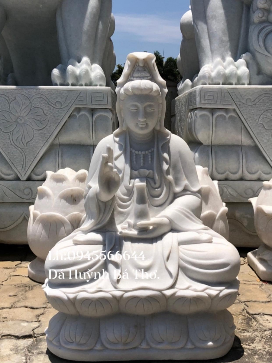Tượng Phật Quán âm ngồi bằng đá đẹp cao 85cm