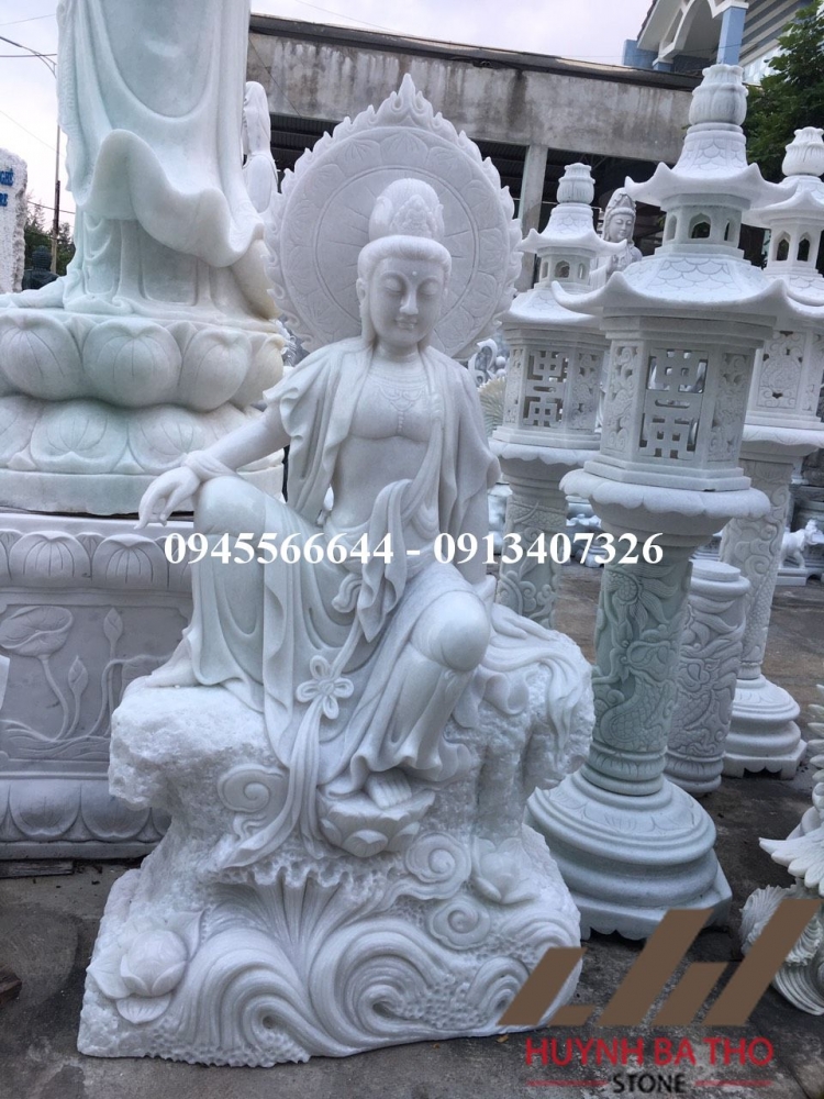 • Điêu khắc đá mỹ nghệ Non Nước Huỳnh Bá Thơ chuyên điêu khắc trực tiếp  tượng phật Bồ Tát Quan Âm Tự Tại đá trắng nguyên khối.