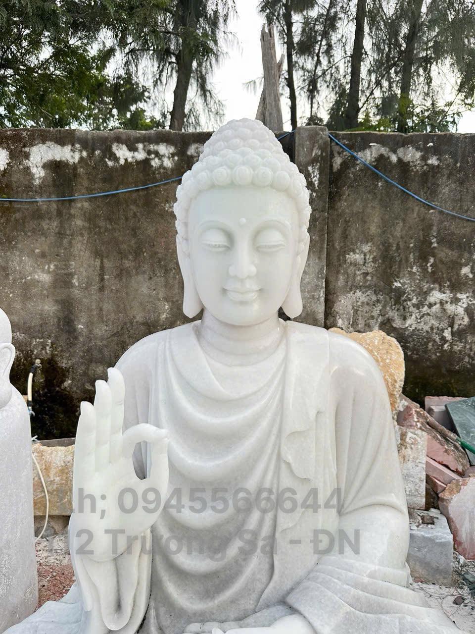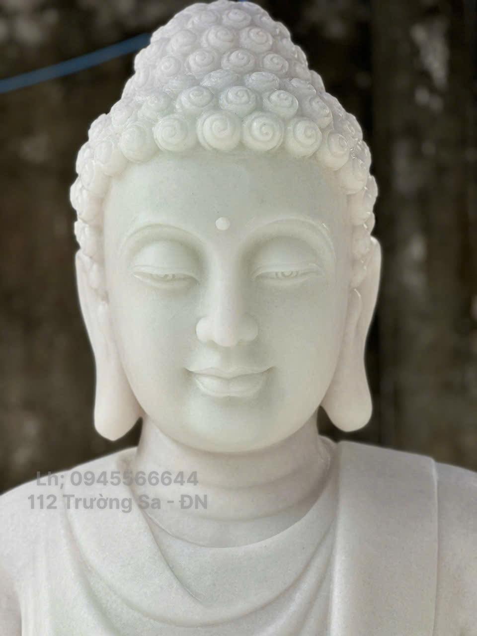 Tượng Phật Thích Ca Mâu Ni cao 1.6m đá trắng xanh nguyên khối