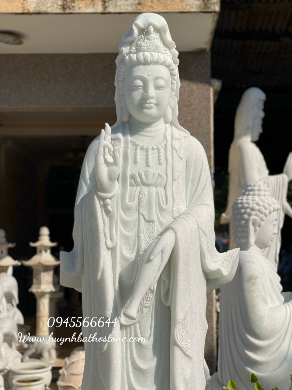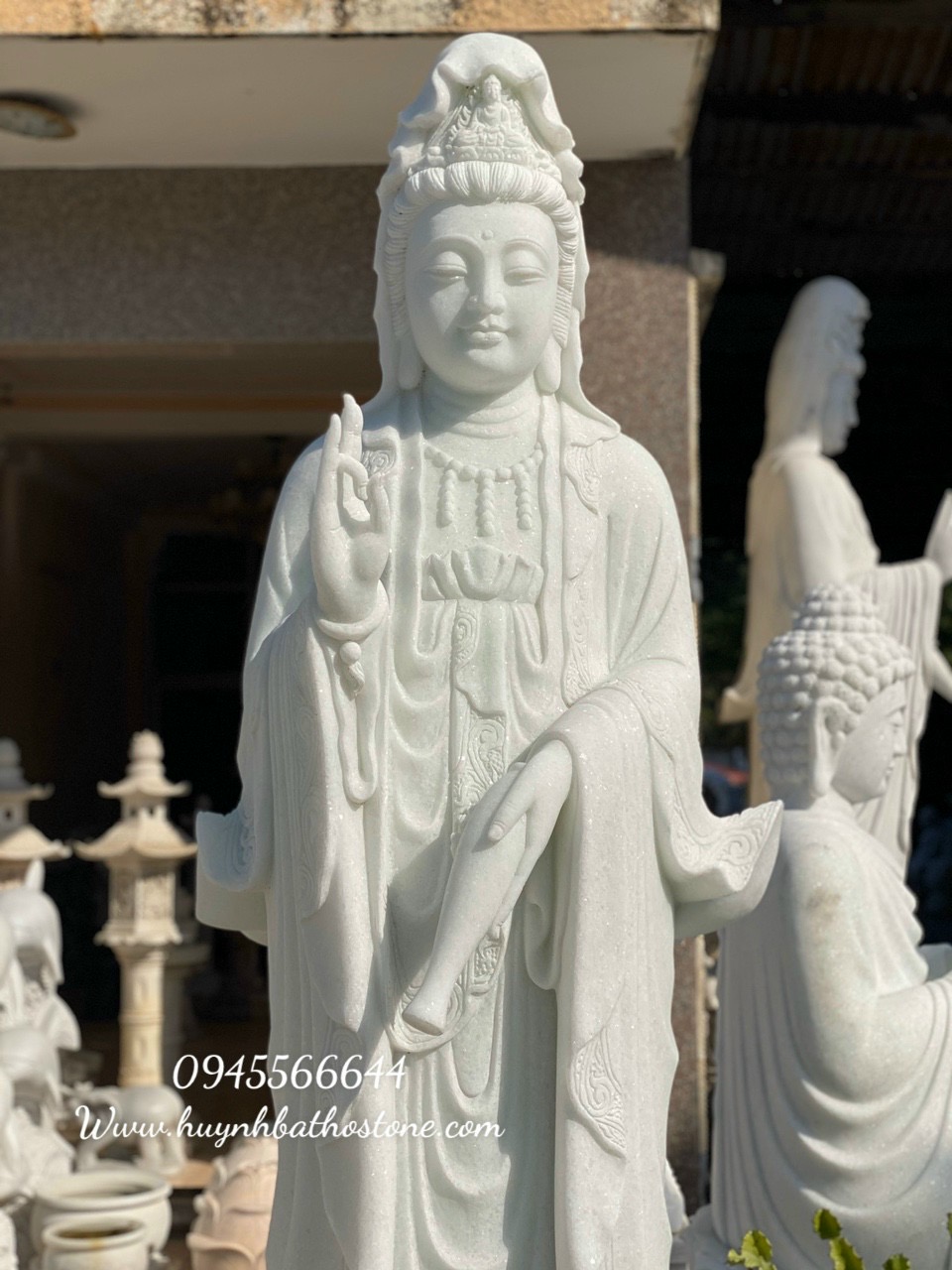 Tôn Tượng Quan Âm Bồ Tát bằng đá tự nhiên có diện tượng đẹp, thể hiện được tướng hảo của Quan Âm. Điều này sẽ giúp cho người chiêm bái sinh được tâm hoan hỉ. Tay nghề cao và cực kỳ tỉ mỉ của thợ làm tượng tại cơ sở Điêu Khắc Đá Huỳnh Bá Thơ tạc nên bức tượng Quan Âm bằng đá diện đẹp, hiền lành và từ bi. Độ bền của tượng phật bằng đá rất cao, để ngoài trời bền mãi với thời gian.