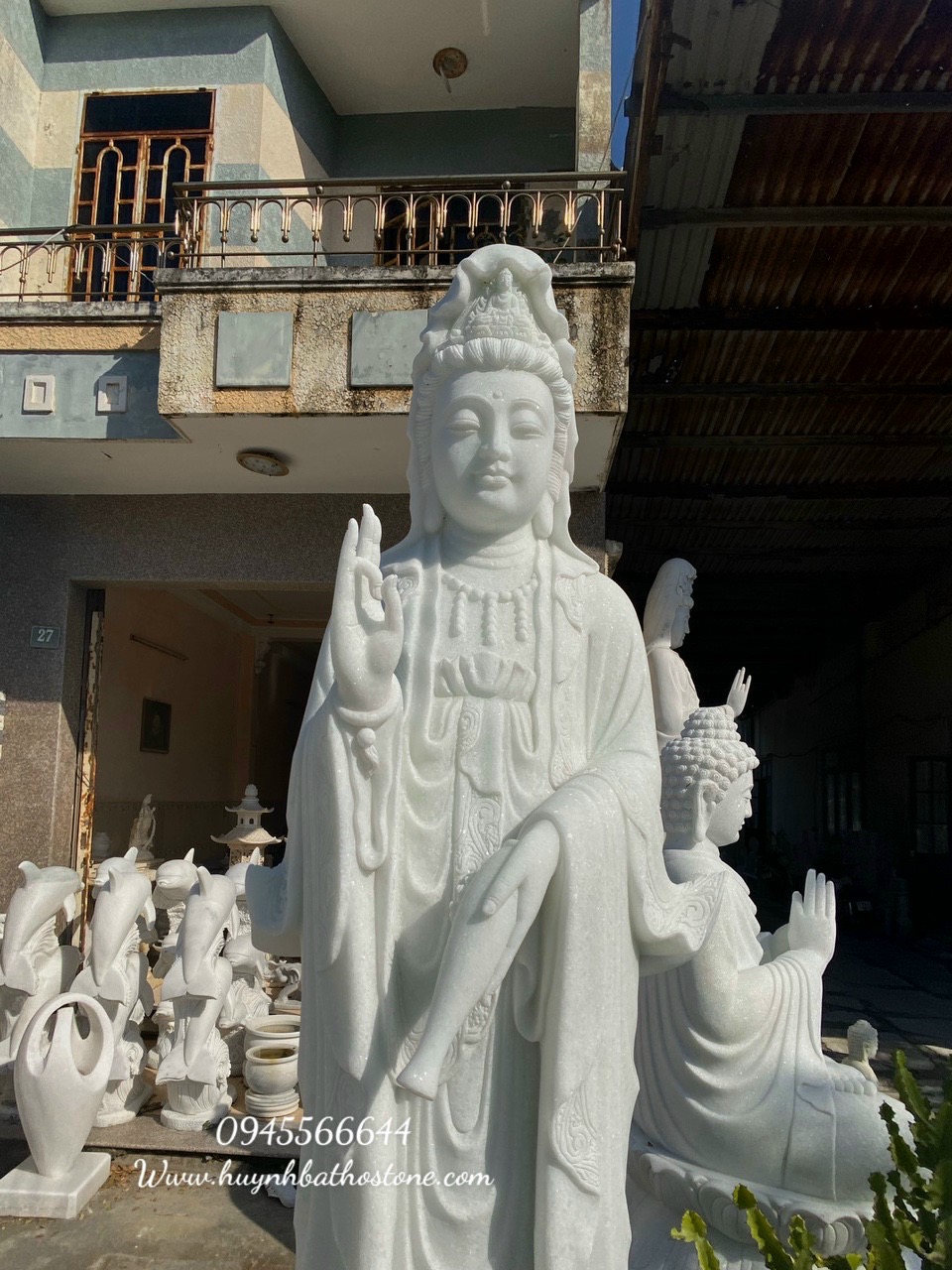 TƯỢNG QUAN ÂM ĐÁ TRẮNG ĐẸP NGUYÊN KHỐI 2,3m. Tham khảo thêm mẫu tượng Phật đẹp tại web: www.huynhbathostone.com (ĐIÊU KHẮC ĐÁ HUỲNH BÁ THƠ).