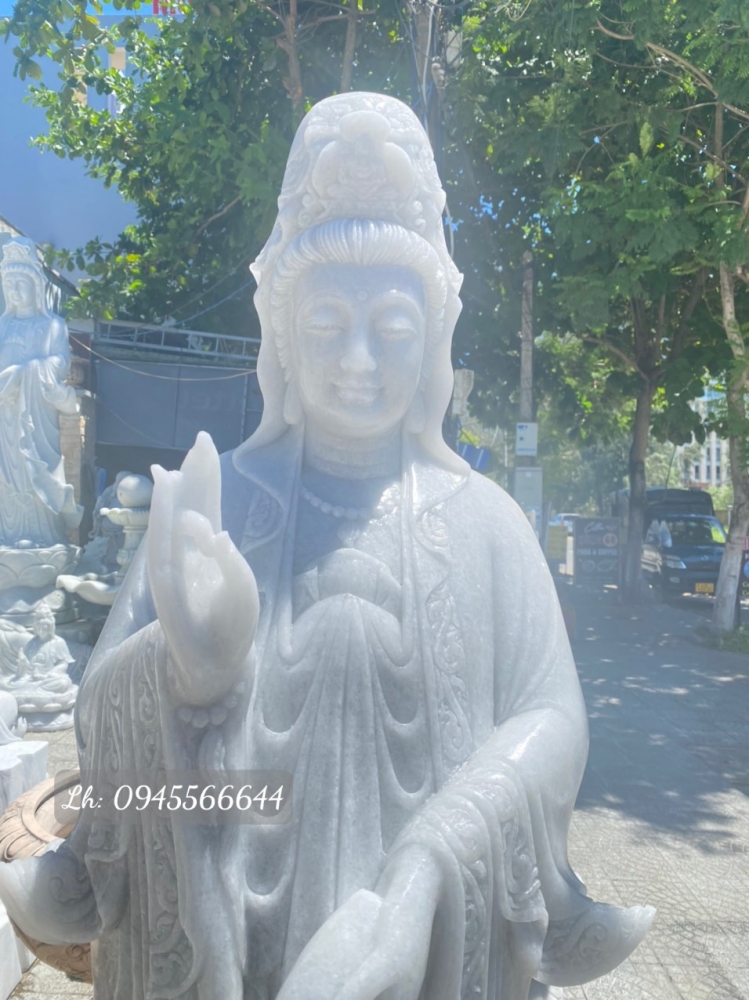 Tượng Phật Quan Âm đá trắng non nước đẹp không tỳ vết 35cm.