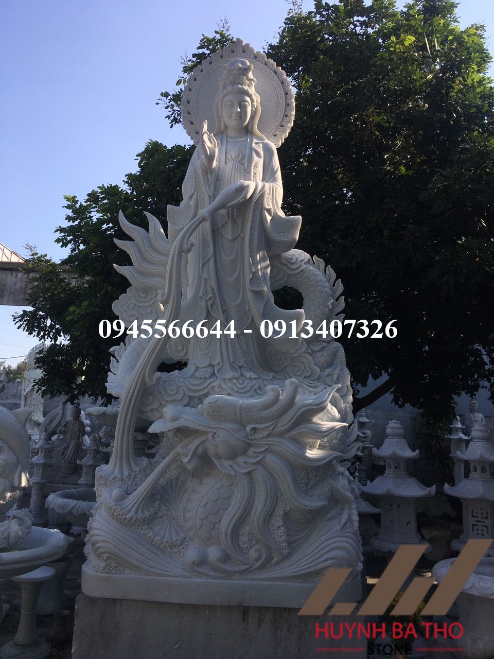 Điêu khắc đá mỹ nghệ Non Nước Huỳnh Bá Thơ - cơ sở chuyên điêu khắc tượng phật Bồ Tát Quan Âm cưỡi rồng đá trắng nguyên khối.